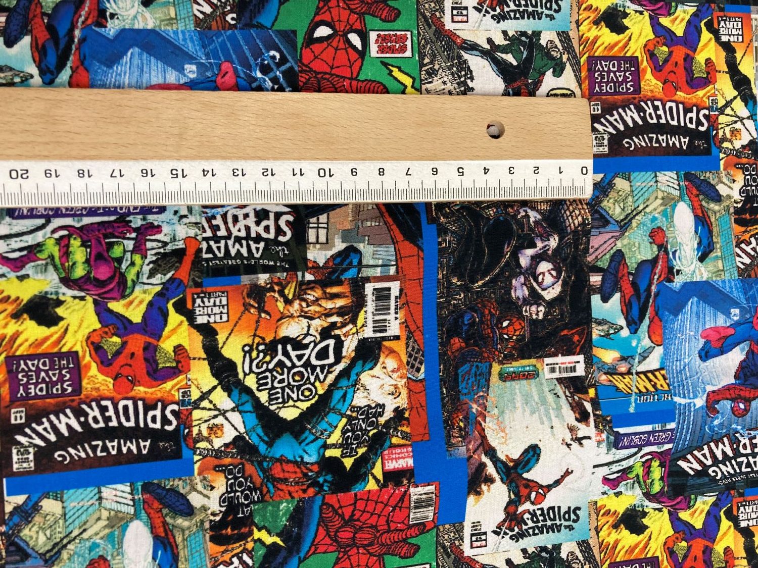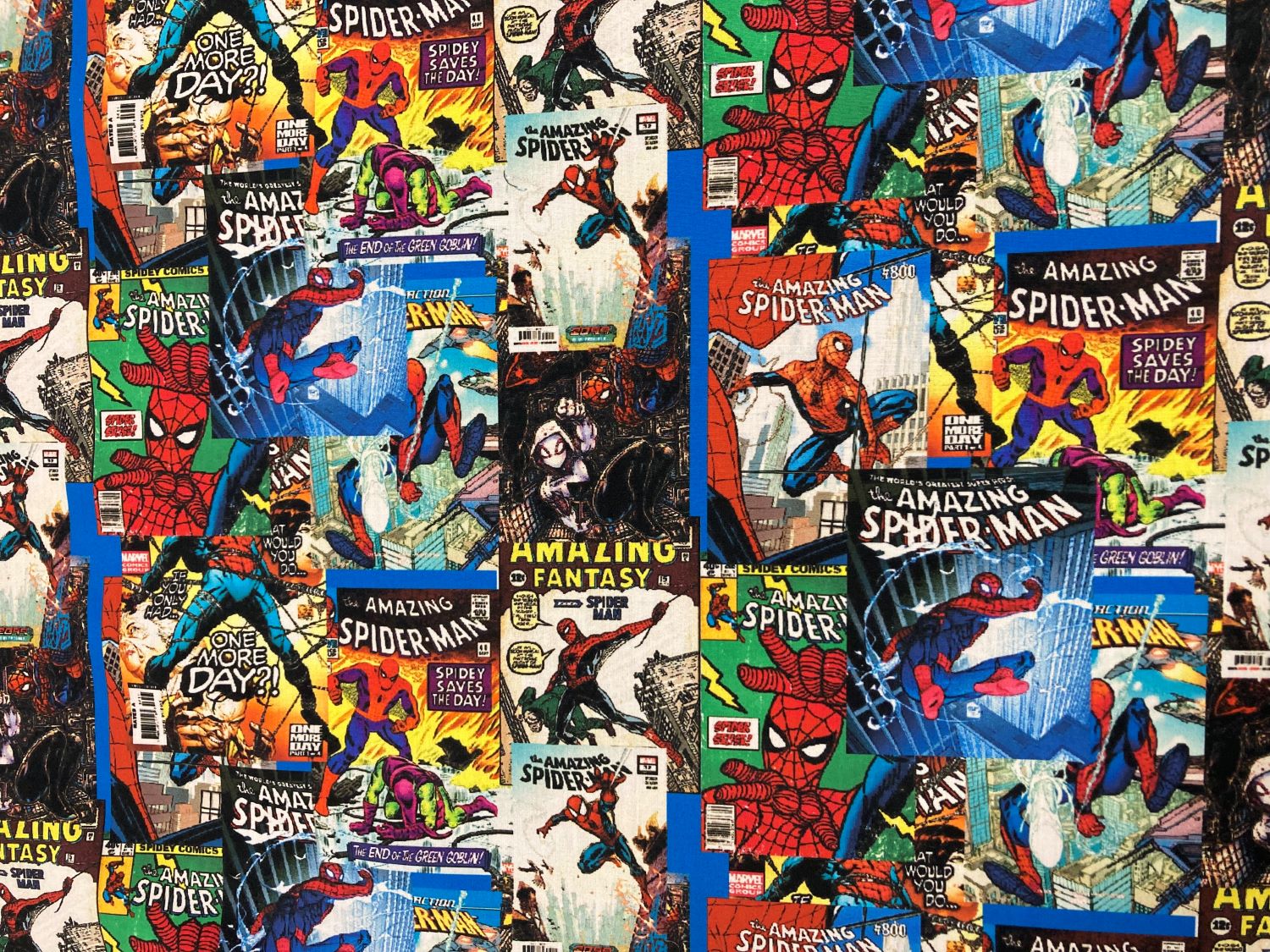 Algodón Con un estampado de Spiderman en forma de viñetas y/o carteles