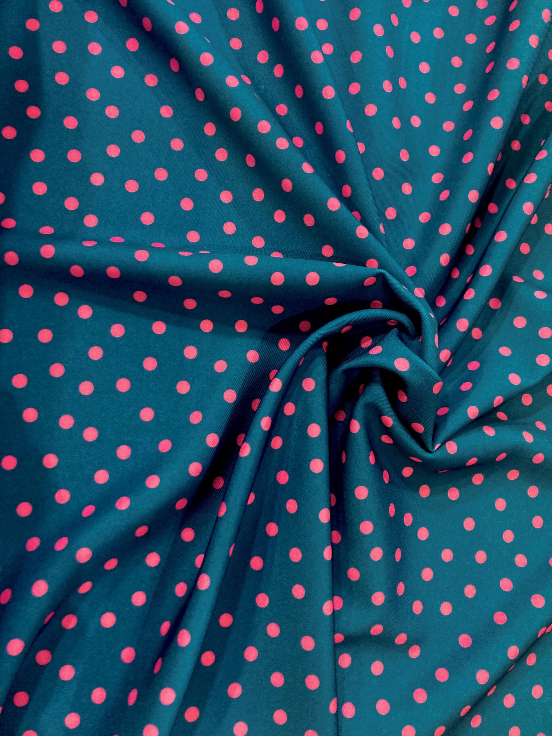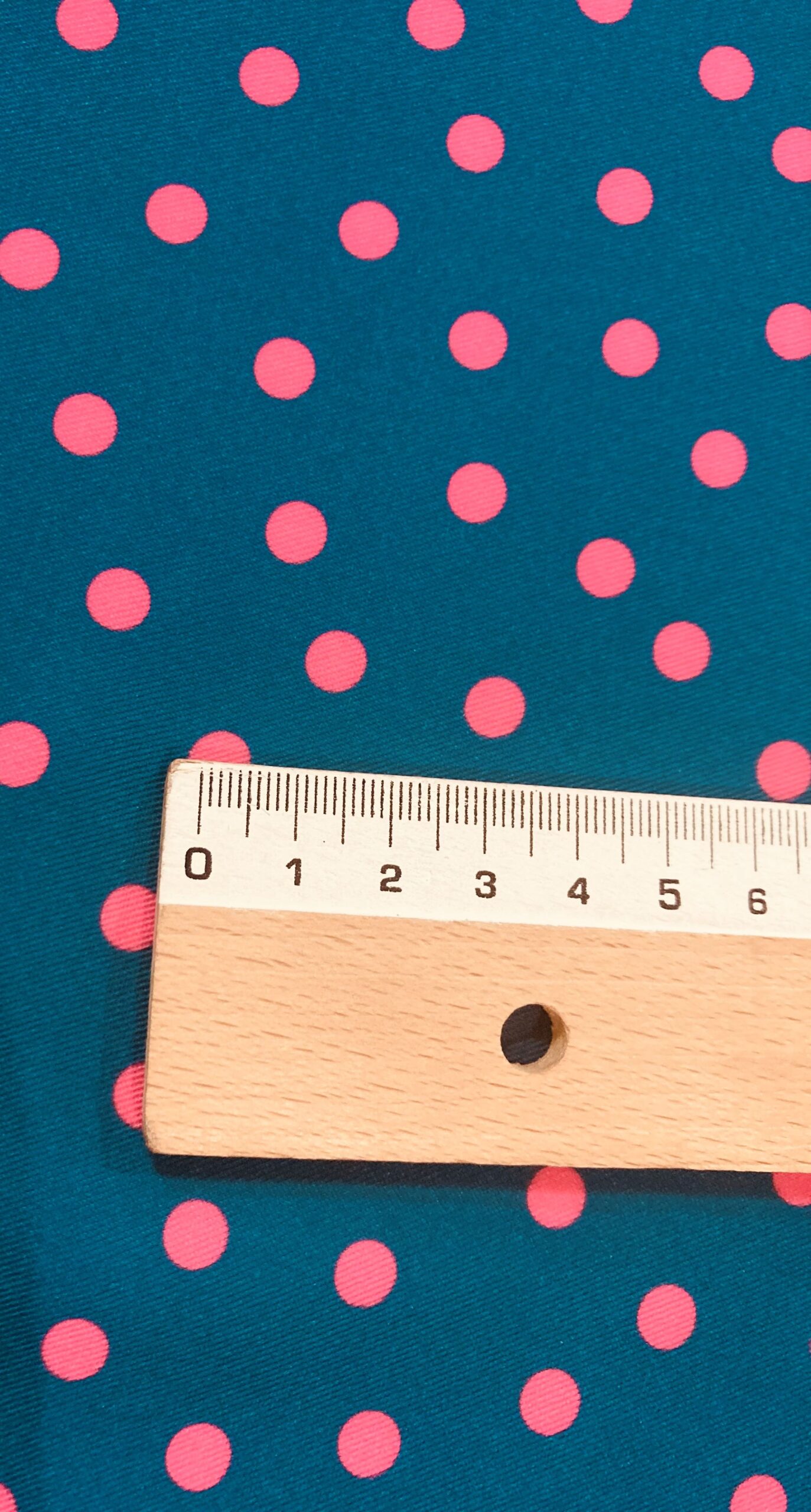 • Bielástico de lunares fucsias con un fondo en azul azafata