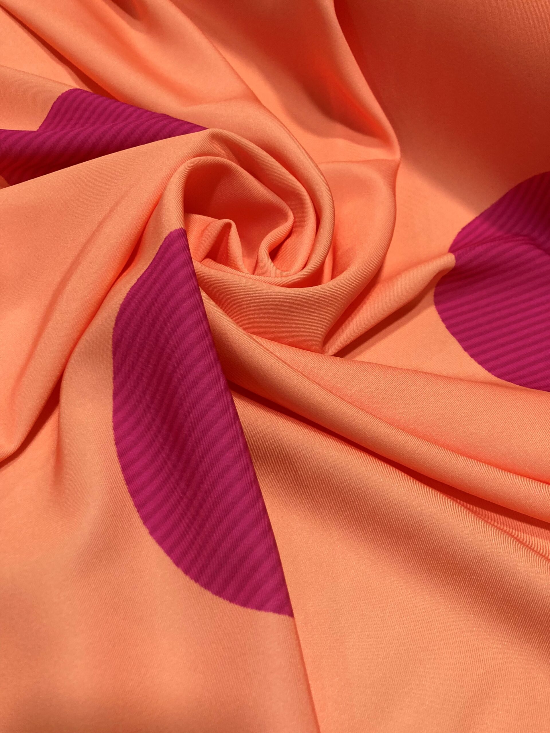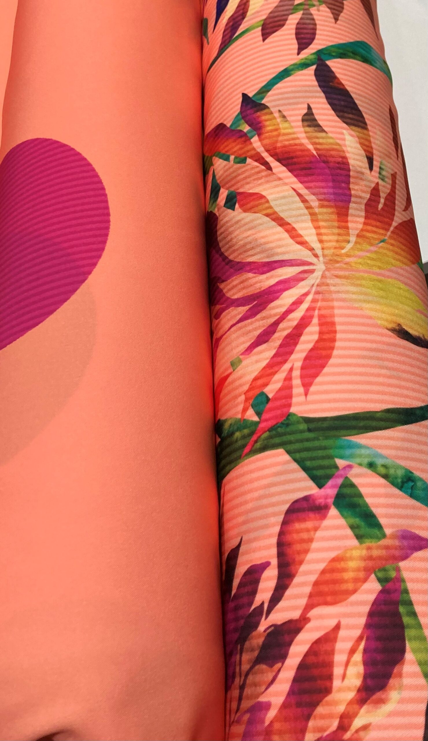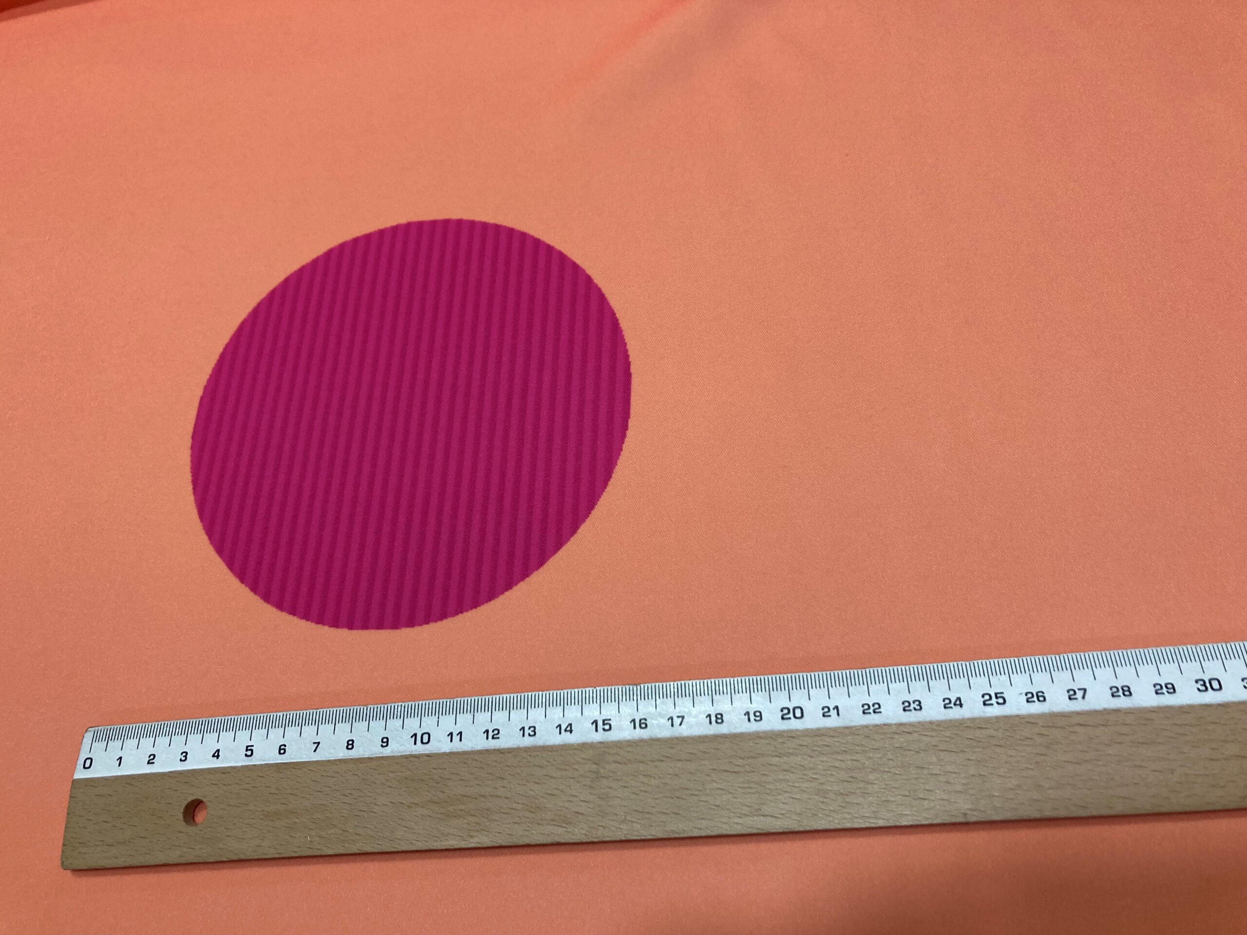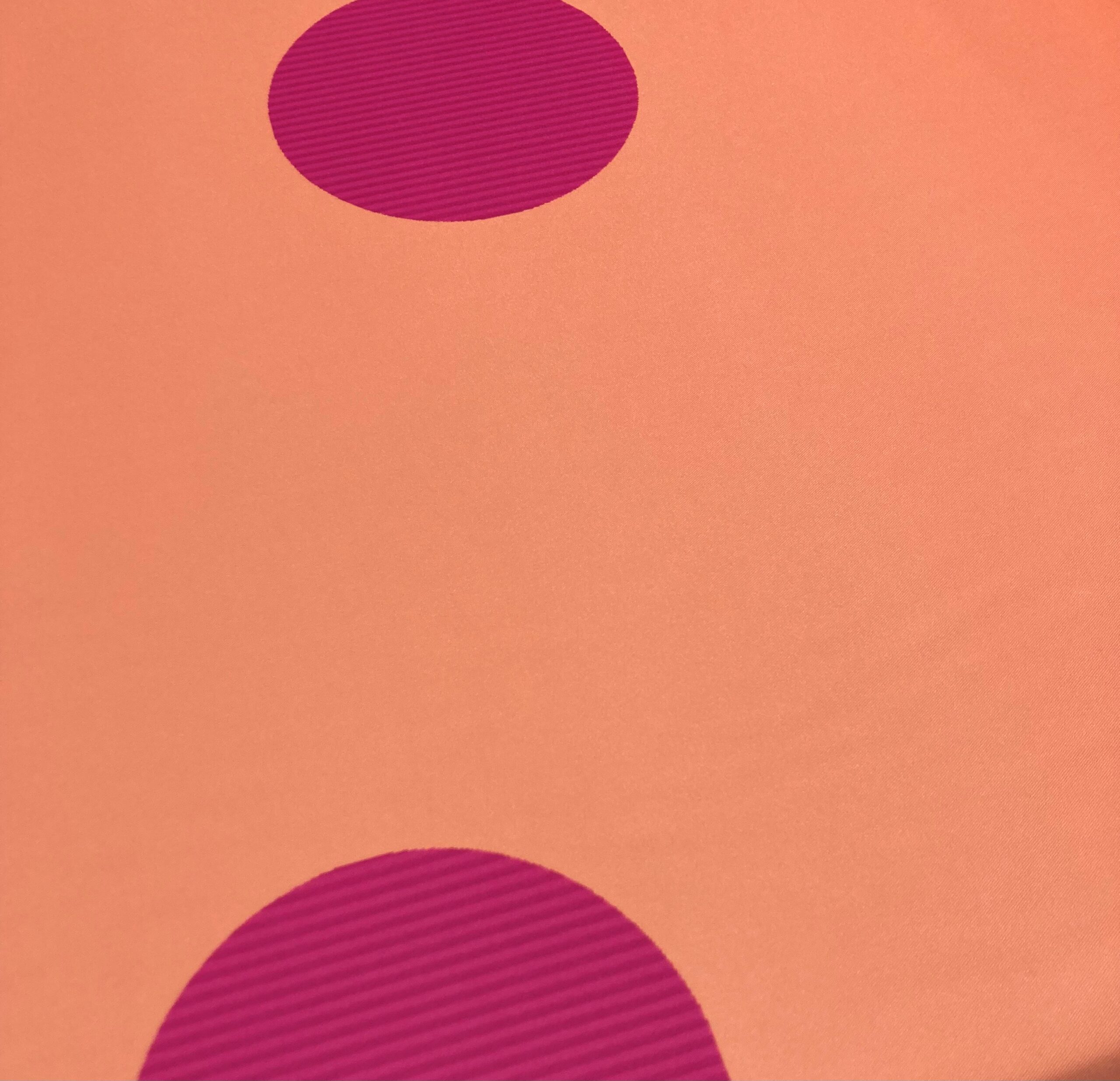 - Bielástico con lunar grande de rayitas en color fucsia y fondo naranja