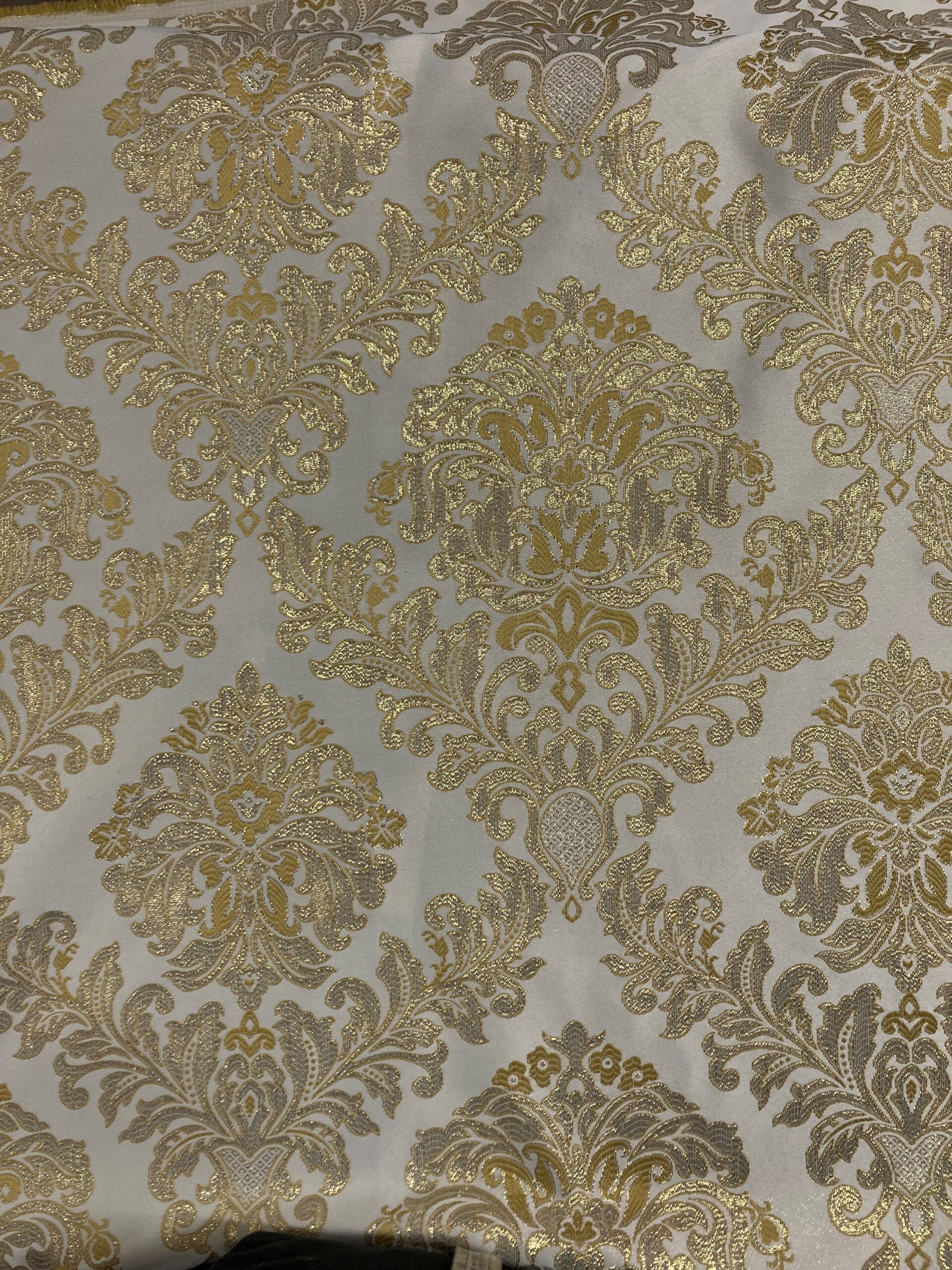 Brocado color crudo y oro, ideal para temas cofrades, aunque también se puede usar para chalecos o cualquier proyecto de costura