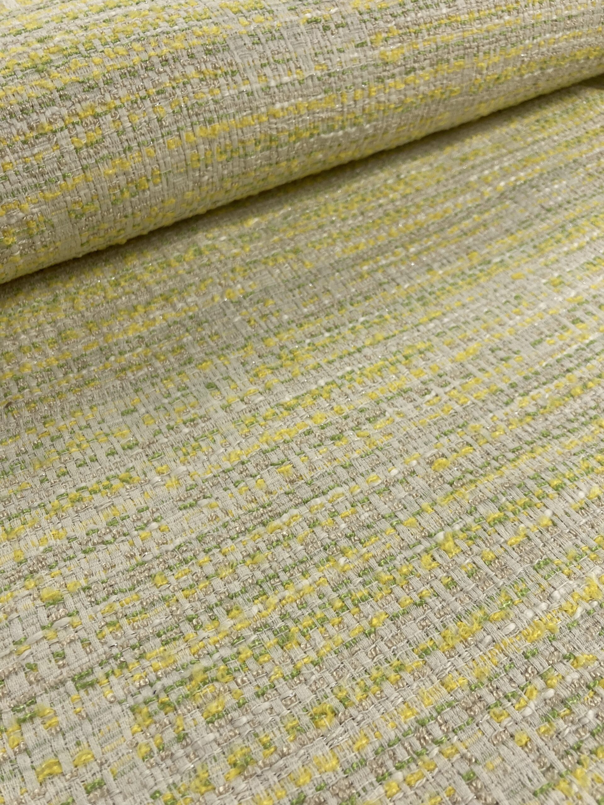 El tweed se hace al tejer los hilos de urdimbre y trama que crean una apariencia única e irregular utilizando diferentes tipos de hilos y pudiendo mezclar hilos nobles con fibras artificiales.