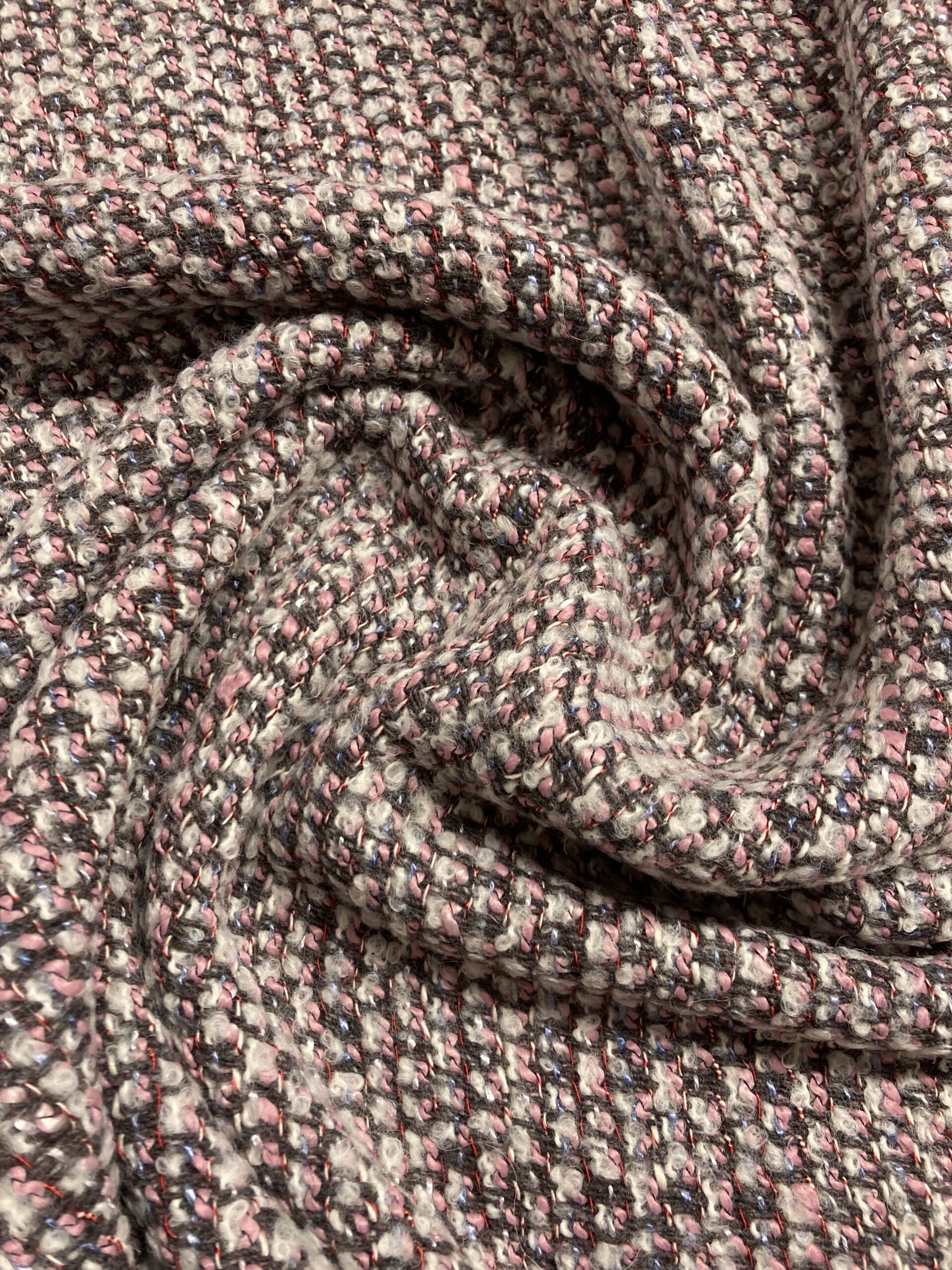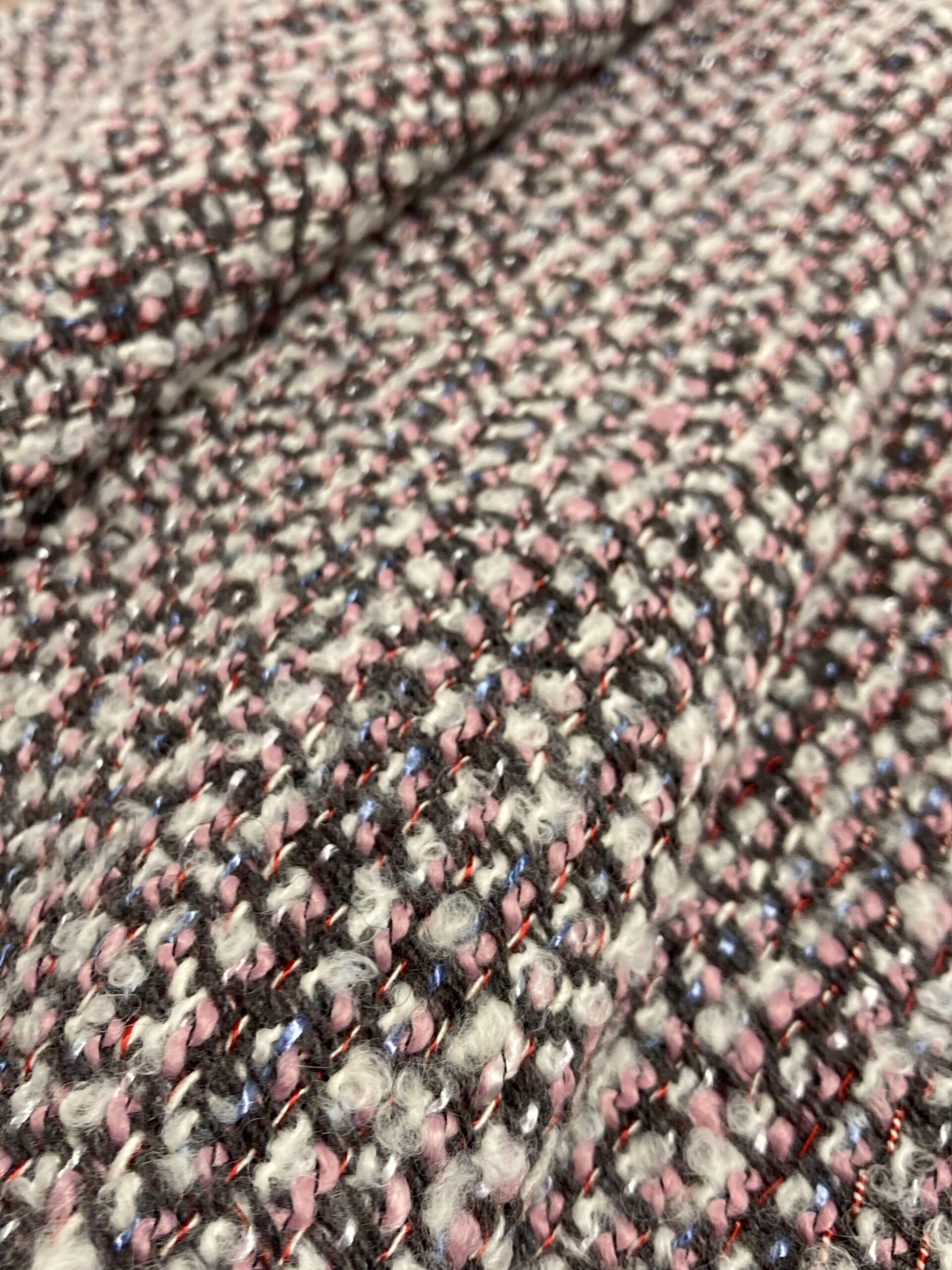 El tweed se hace al tejer los hilos de urdimbre y trama que crean una apariencia única e irregular utilizando diferentes tipos de hilos y pudiendo mezclar hilos nobles con fibras artificiales.