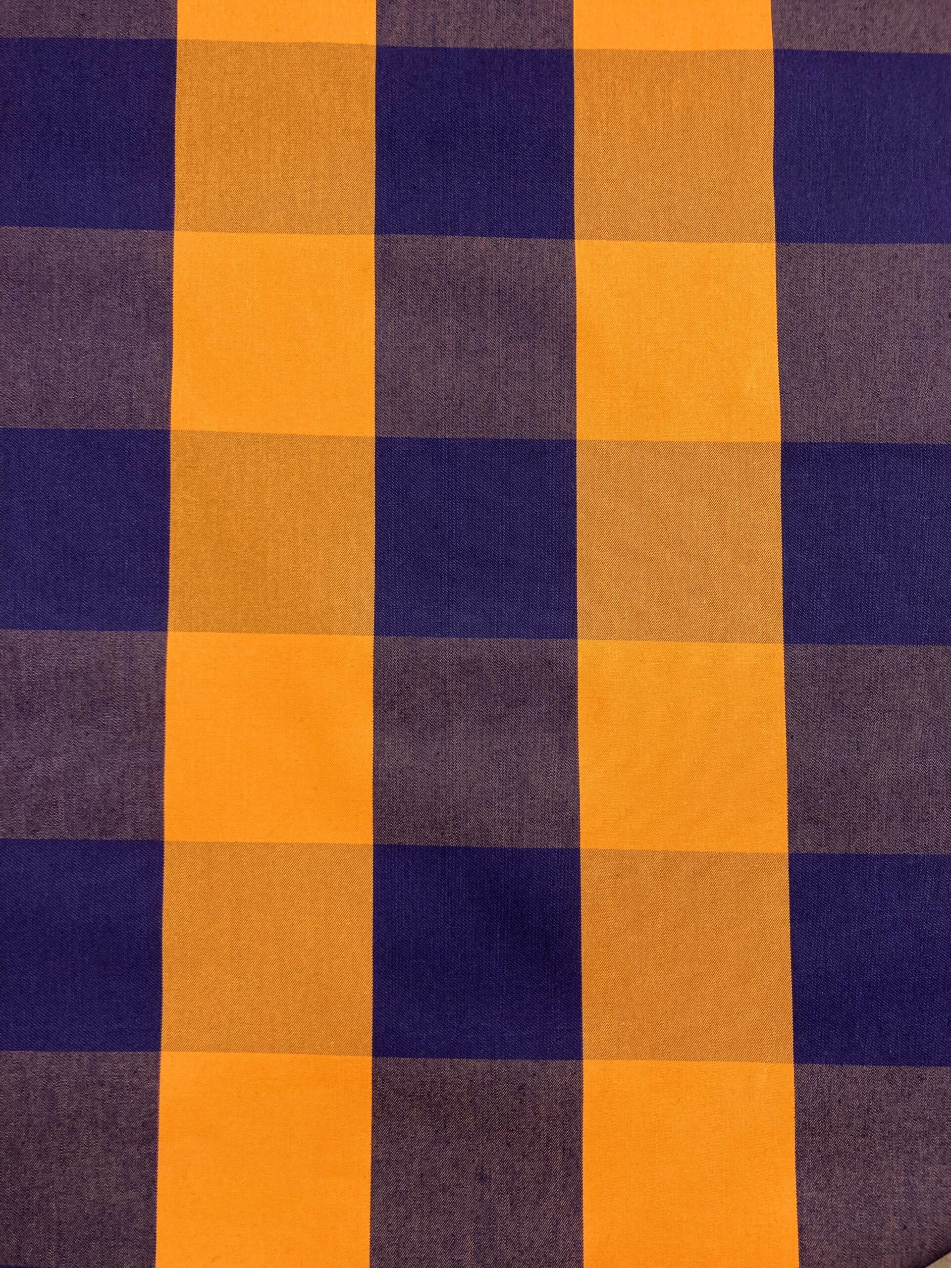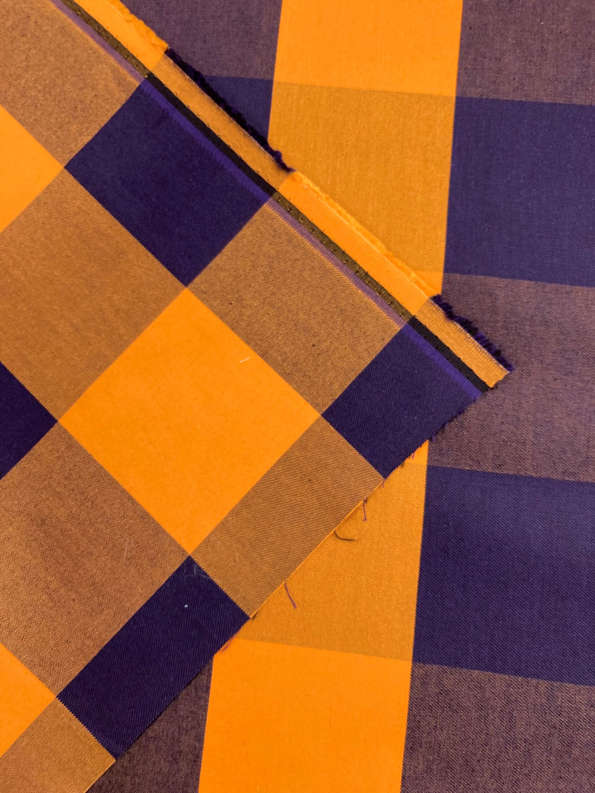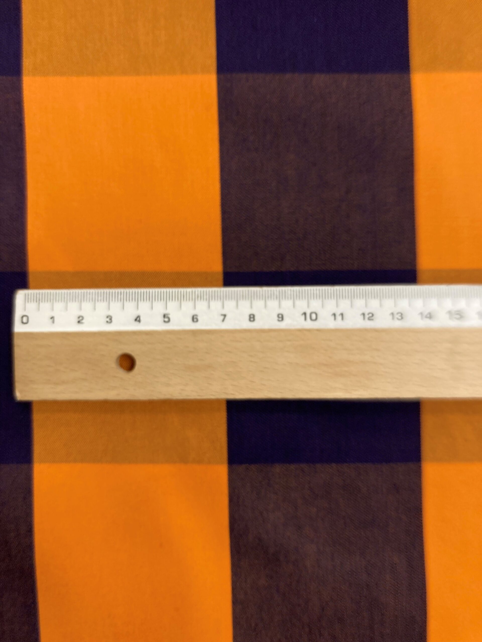 cuadro escocés azul y naranja . Tela con cuerpo, y con un poco de caída y de textura suave, un tejido cálido. Ideal para la confección de faldas, vestidos y chaquetas, así como trajes y complementos de moda.