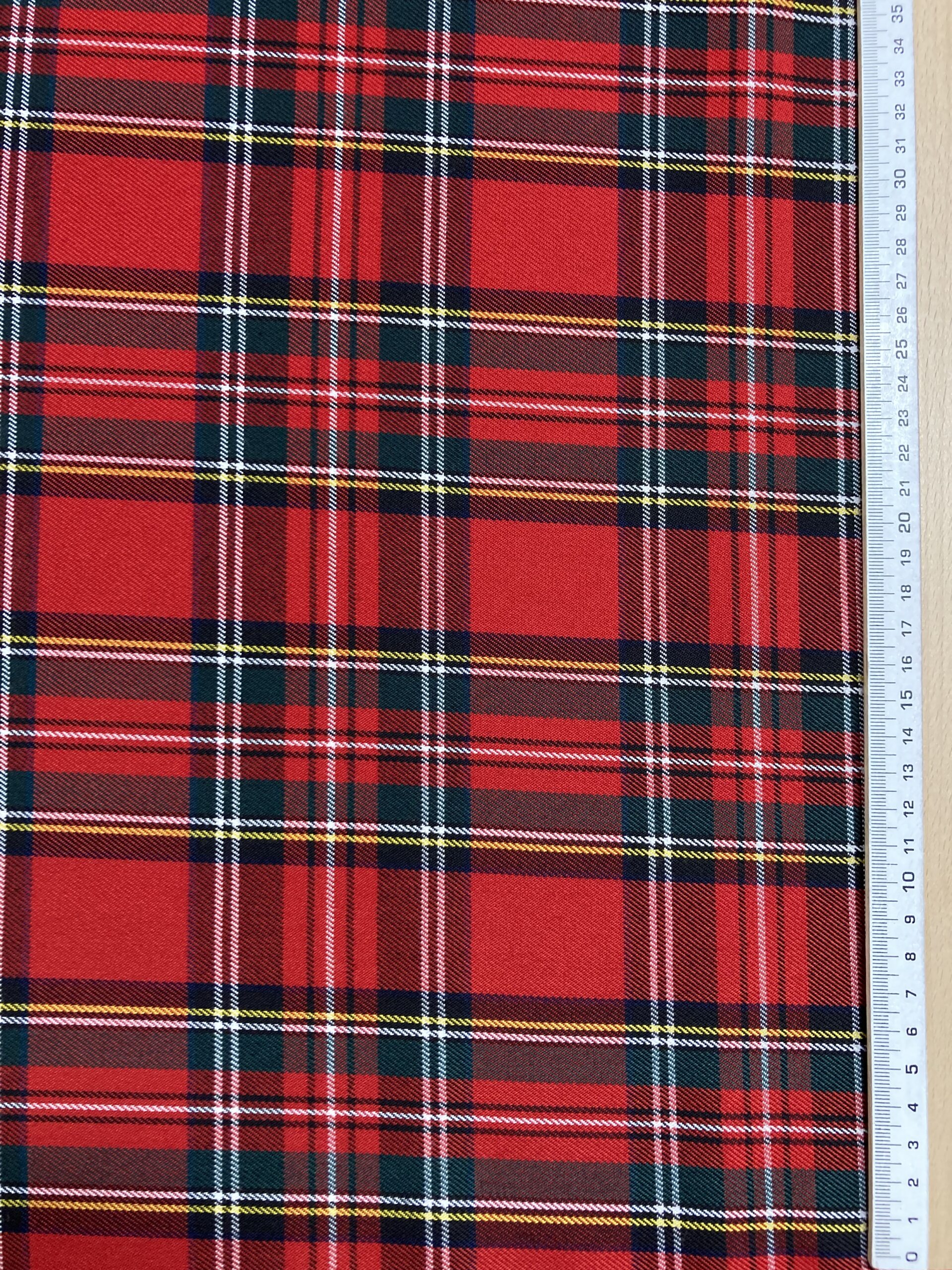 cuadro escoces rojo. Tela con cuerpo, caída y de textura suave, un tejido cálido. Ideal para la confección de faldas, vestidos y chaquetas, así como trajes y complementos de moda.
