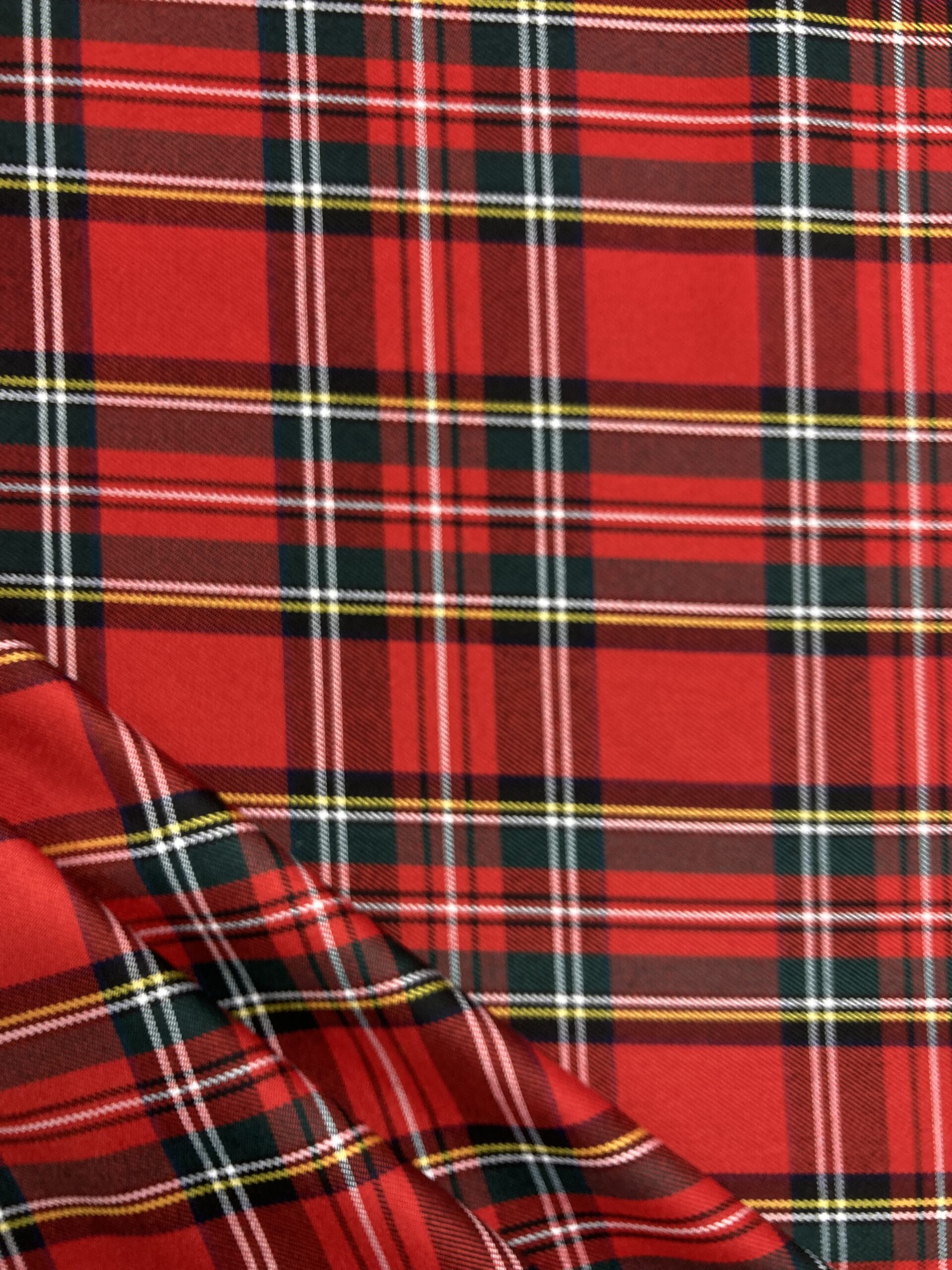 Cuadro escoces rojo. Tela con cuerpo, caída y de textura suave, un tejido cálido. Ideal para la confección de faldas, vestidos y chaquetas, así como trajes y complementos de moda.