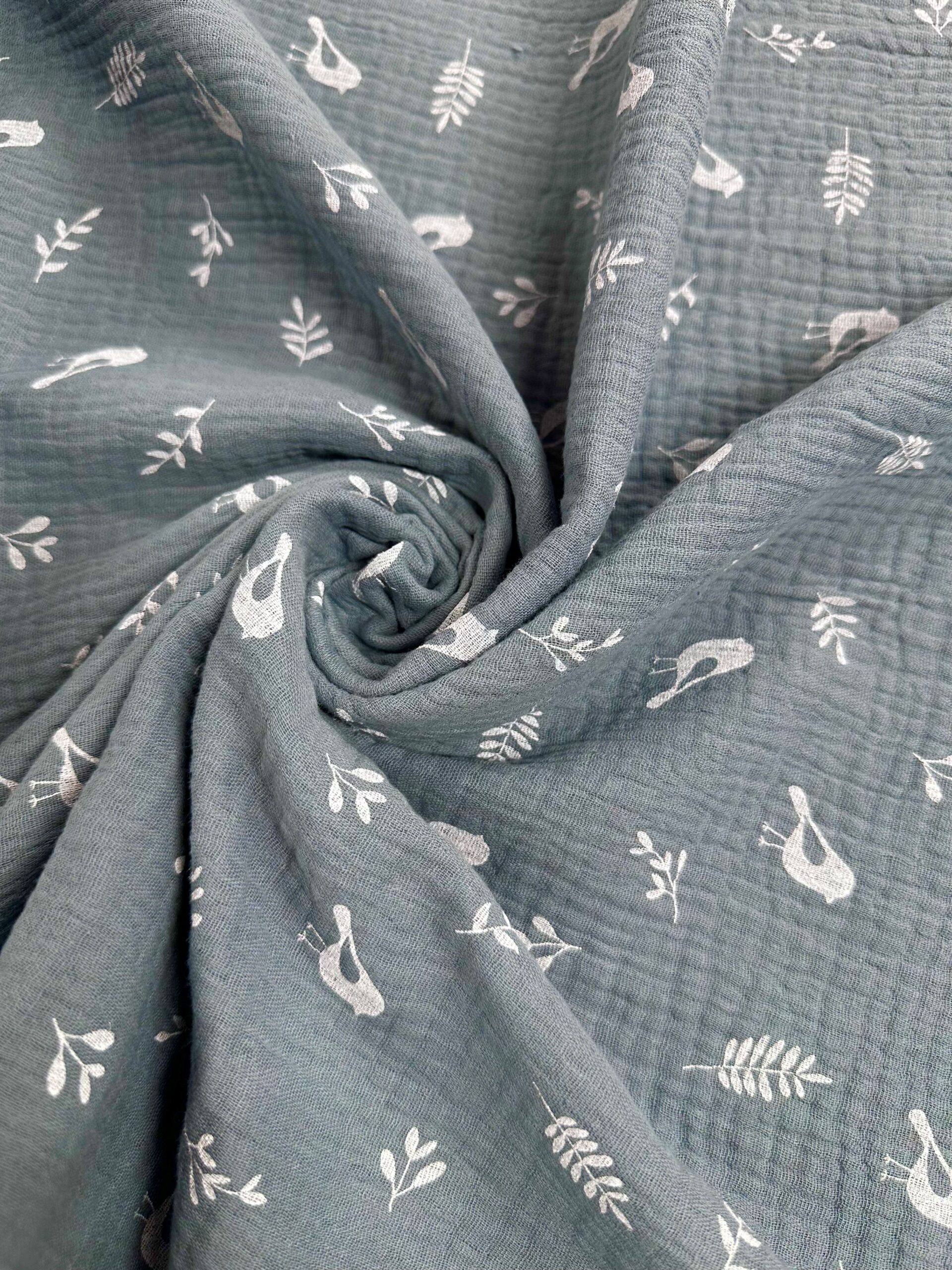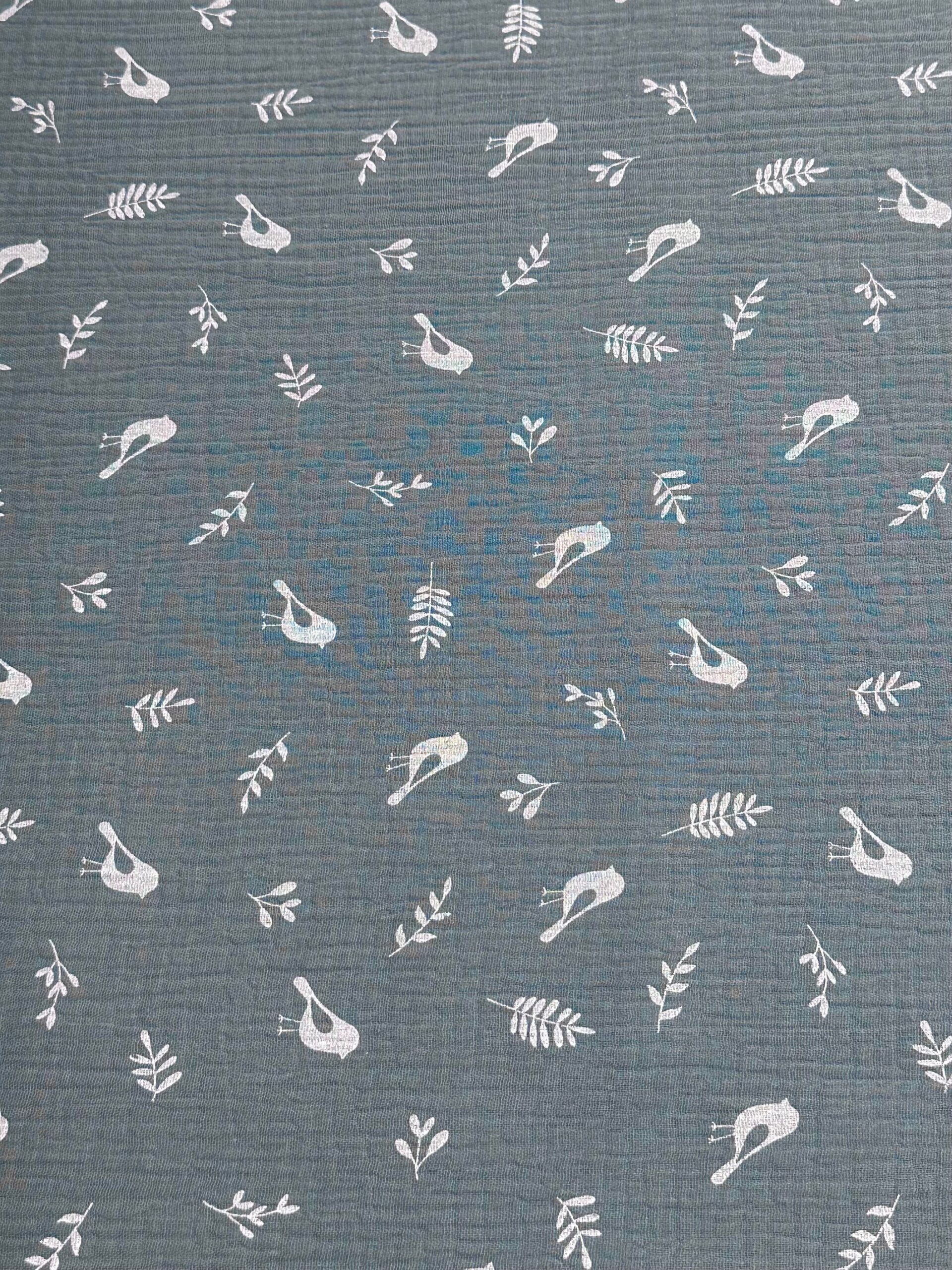 Doble gasa con un estampado de pequeños pajaritos y hojas