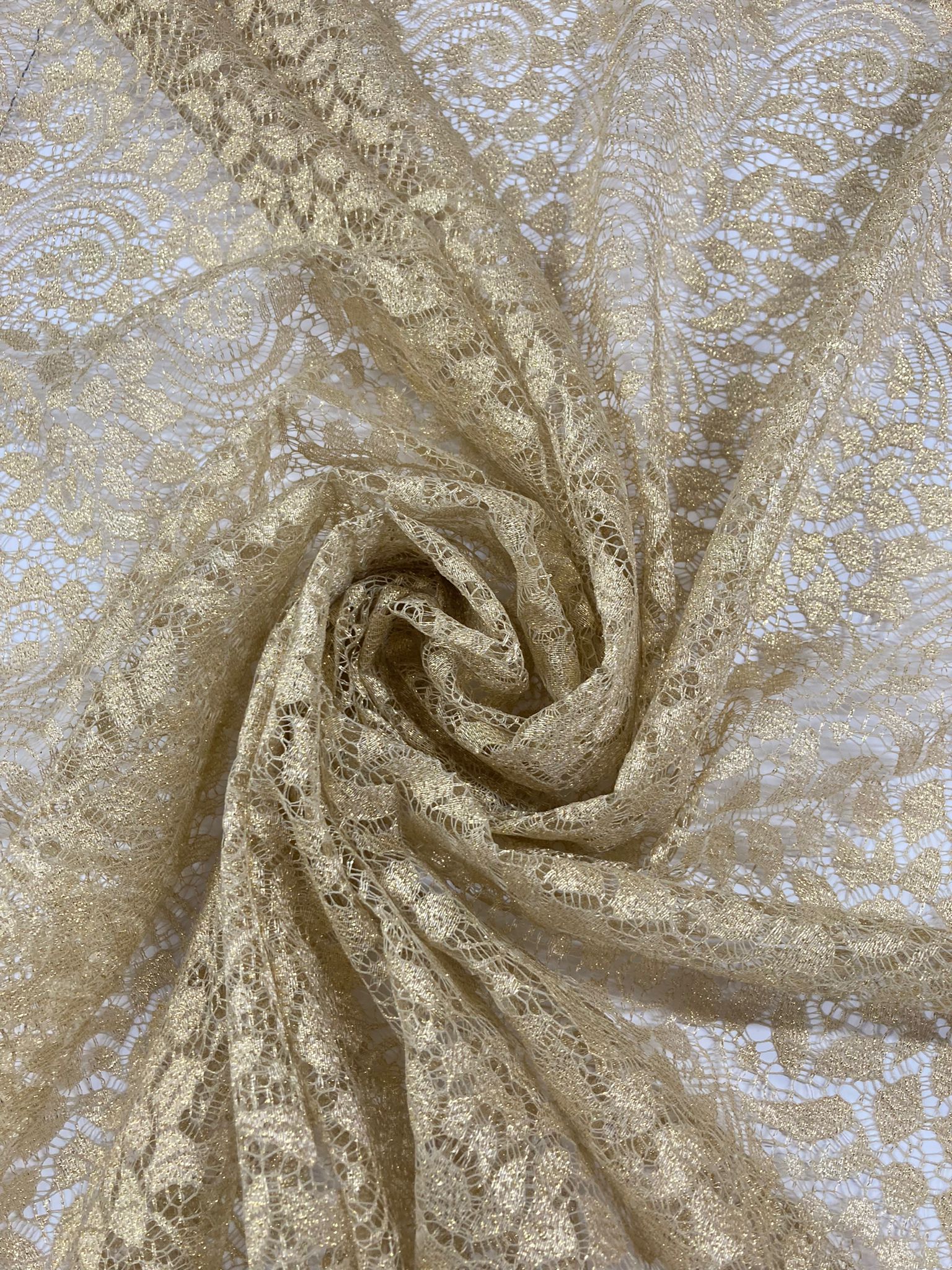 Encaje en color dorado con pequeños detalles de lurex.