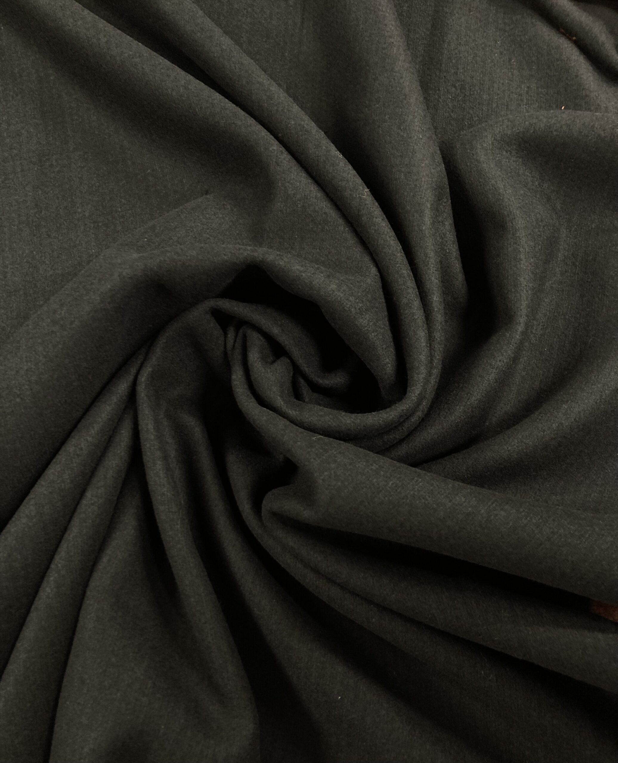 Franela de color negro, de grosor medio, de tacto muy suave y agradable.