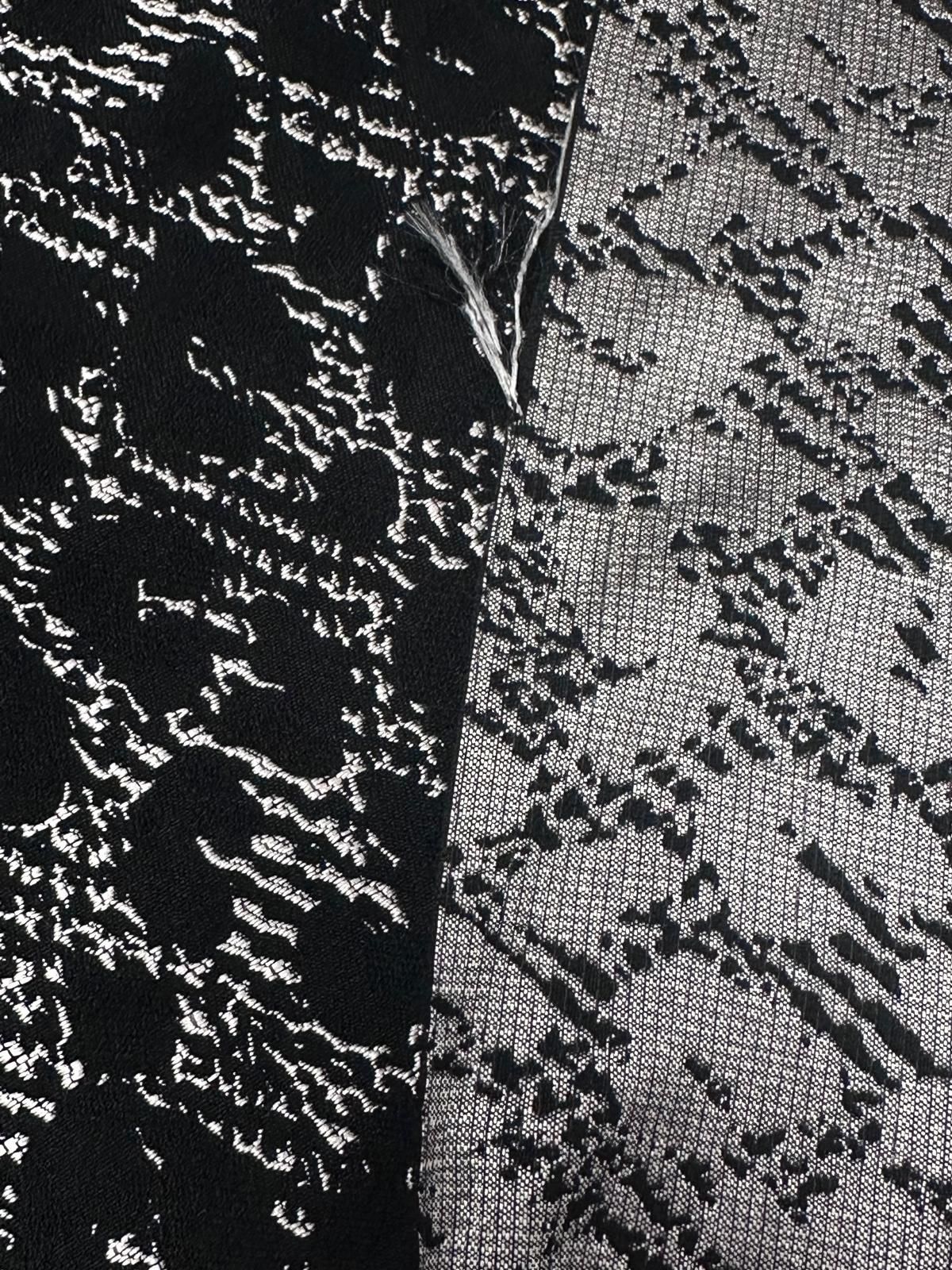 El Jacquard Bossa negro es de color negro y champán clarito, va haciendo un dibujo de tipo animal print.