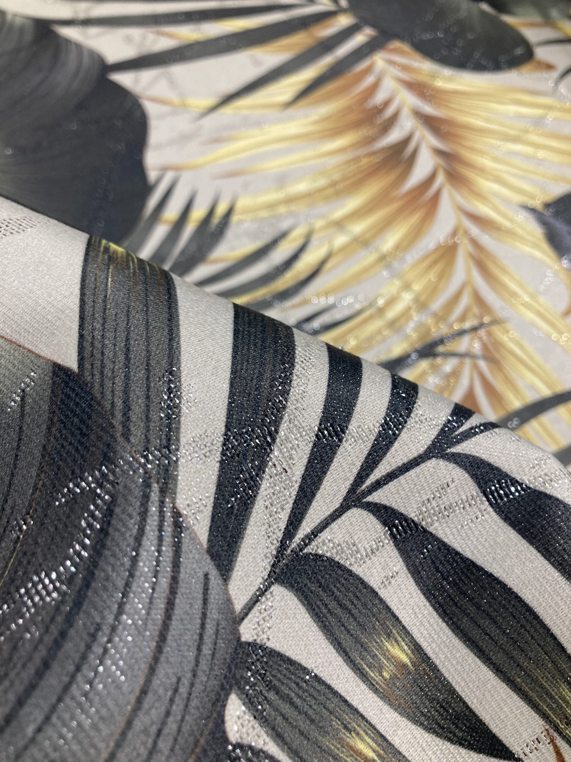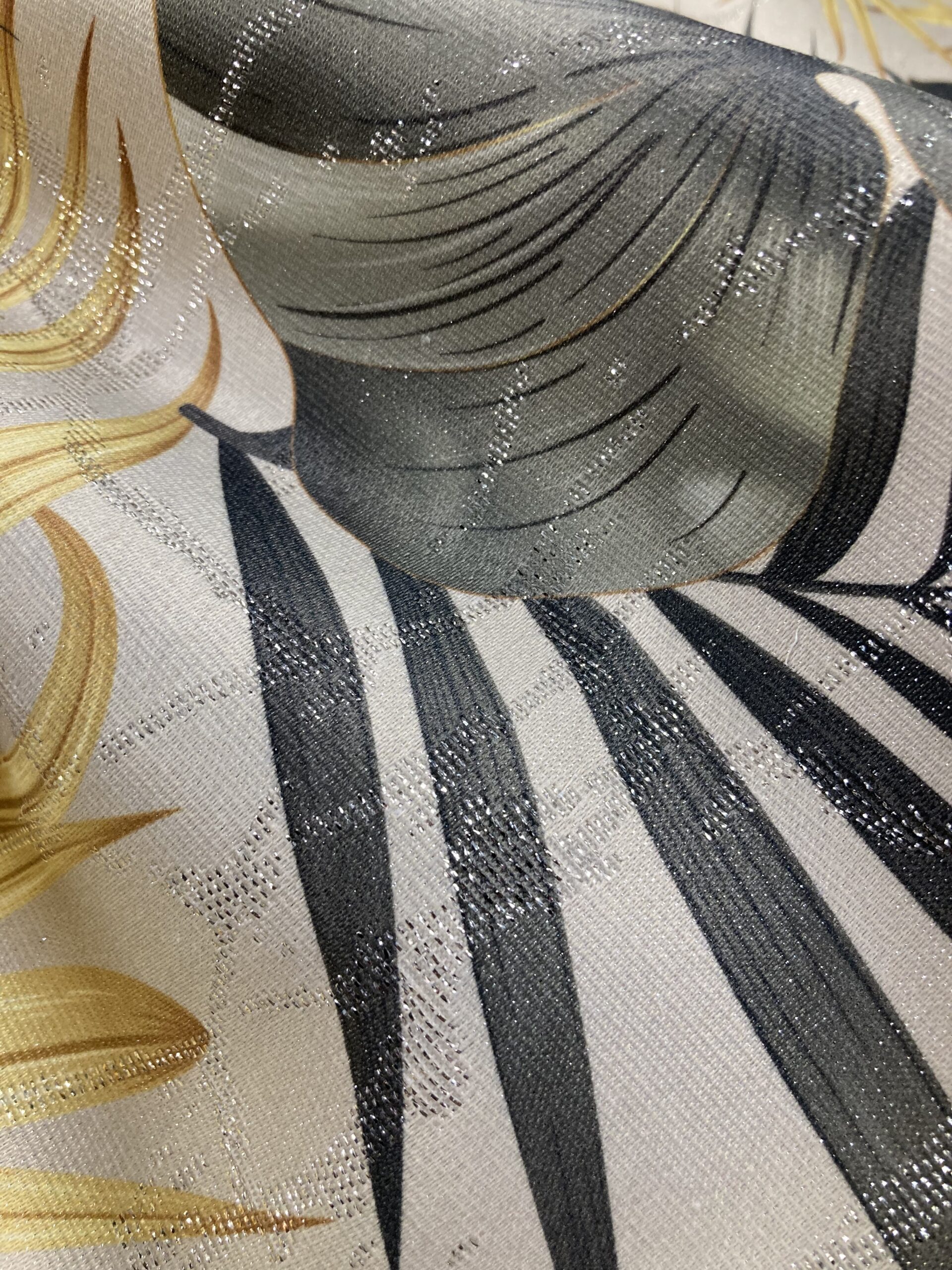 Jacquard estampado en digital, lleva hilo de lurex plateado