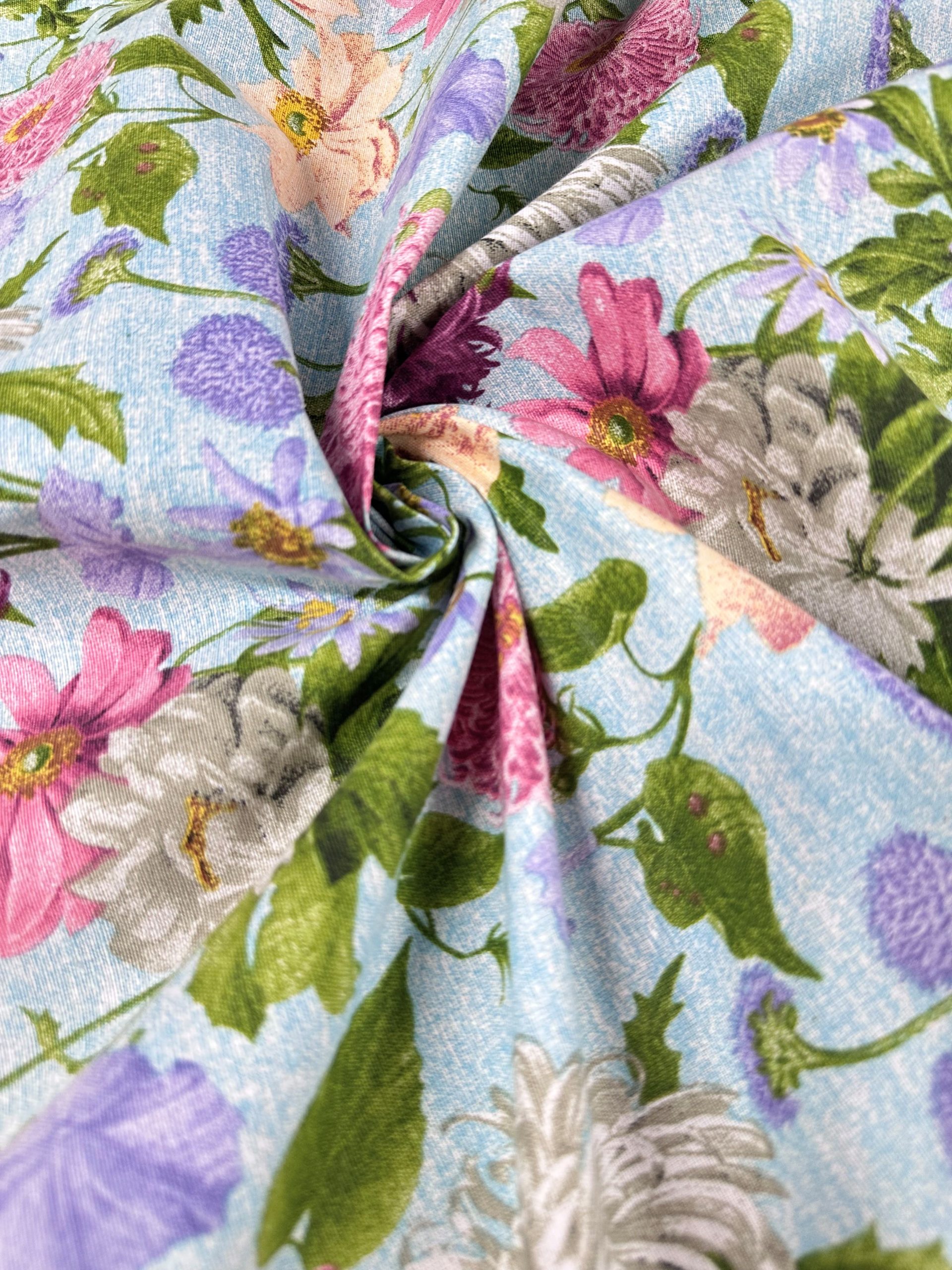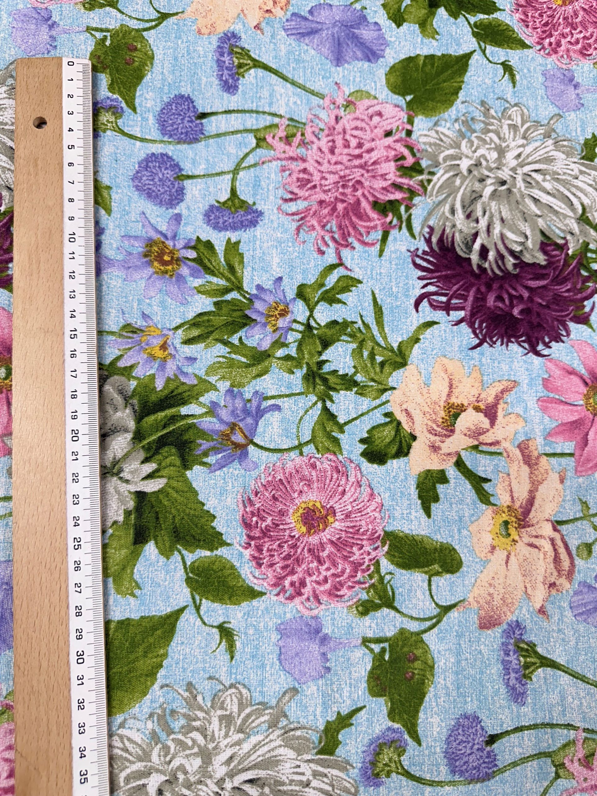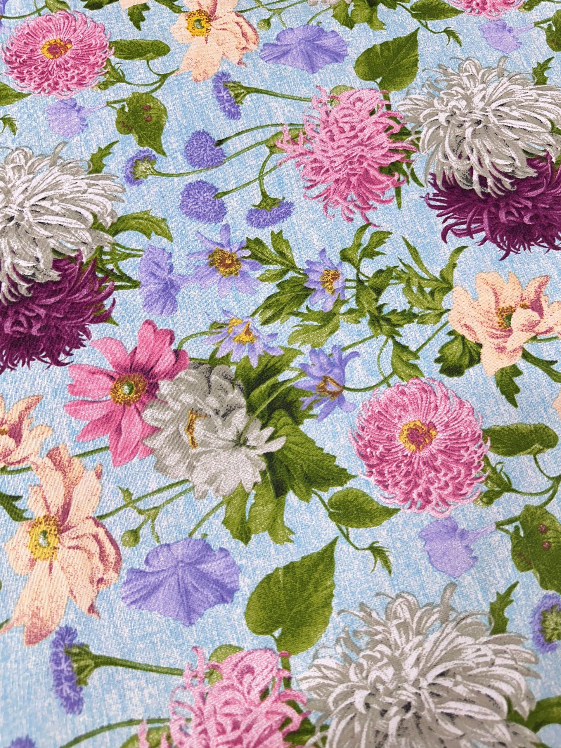 Uso: Loneta estampada con flores grandes de colores,malva,rosa palo,burdeos,blanco grisáceo y lila, ideal para ropa para el hogar, cojines, cortinas, colchas,bolsas, etc…