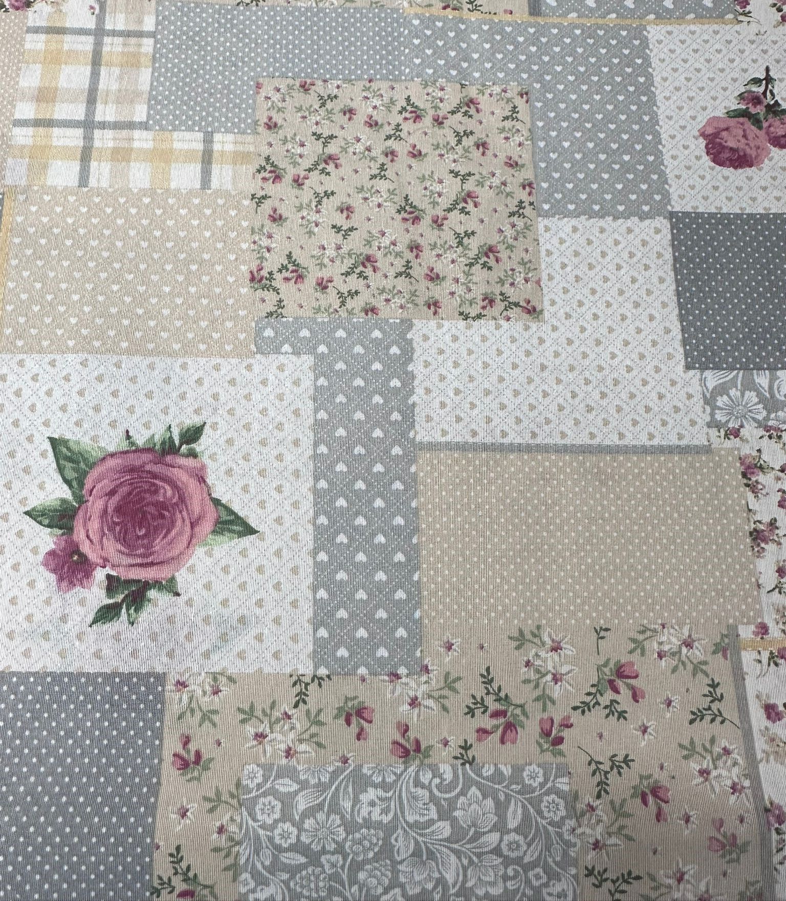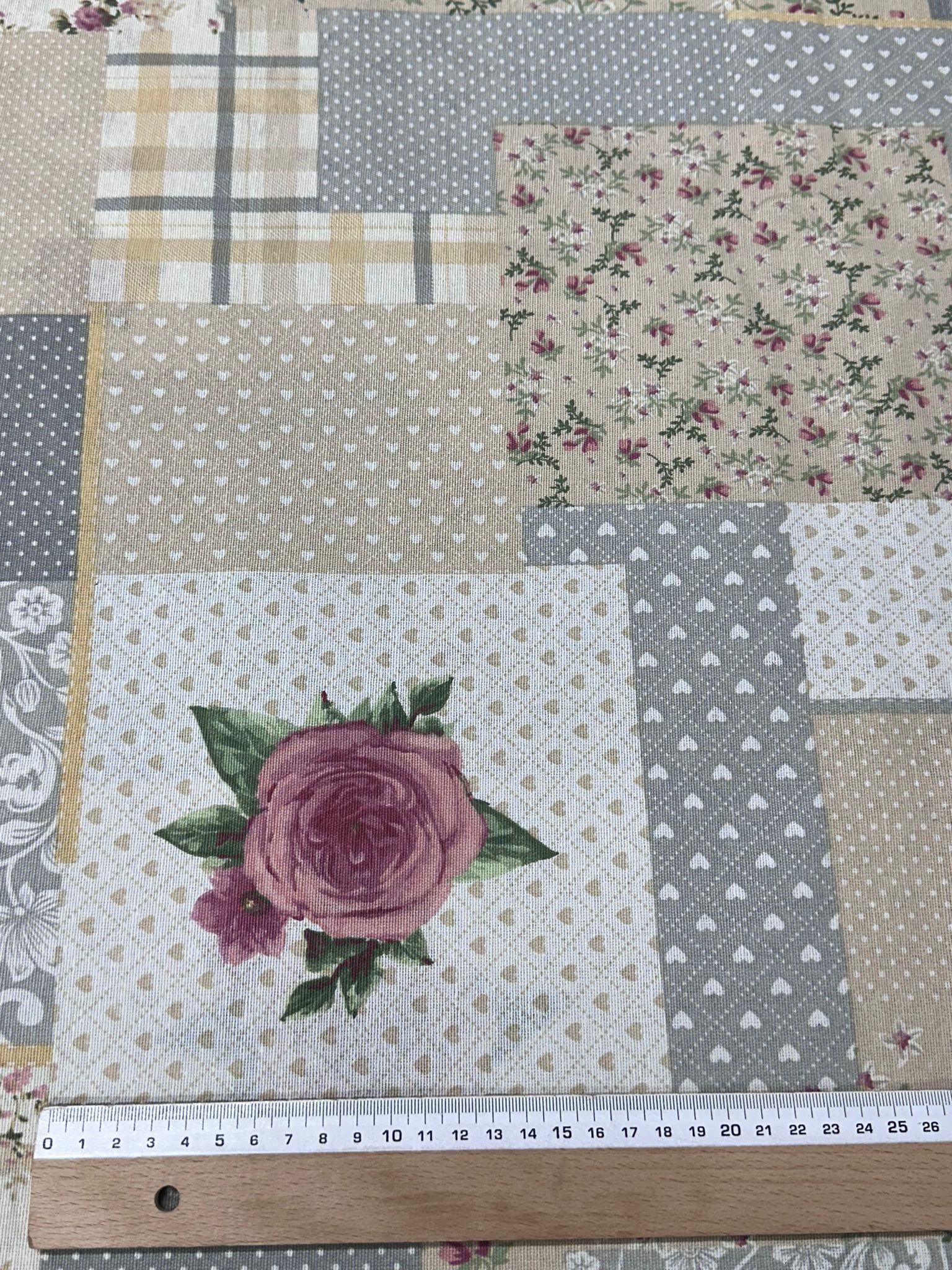 Uso: Loneta estampado patchwork en tono crudo, beig, gris..