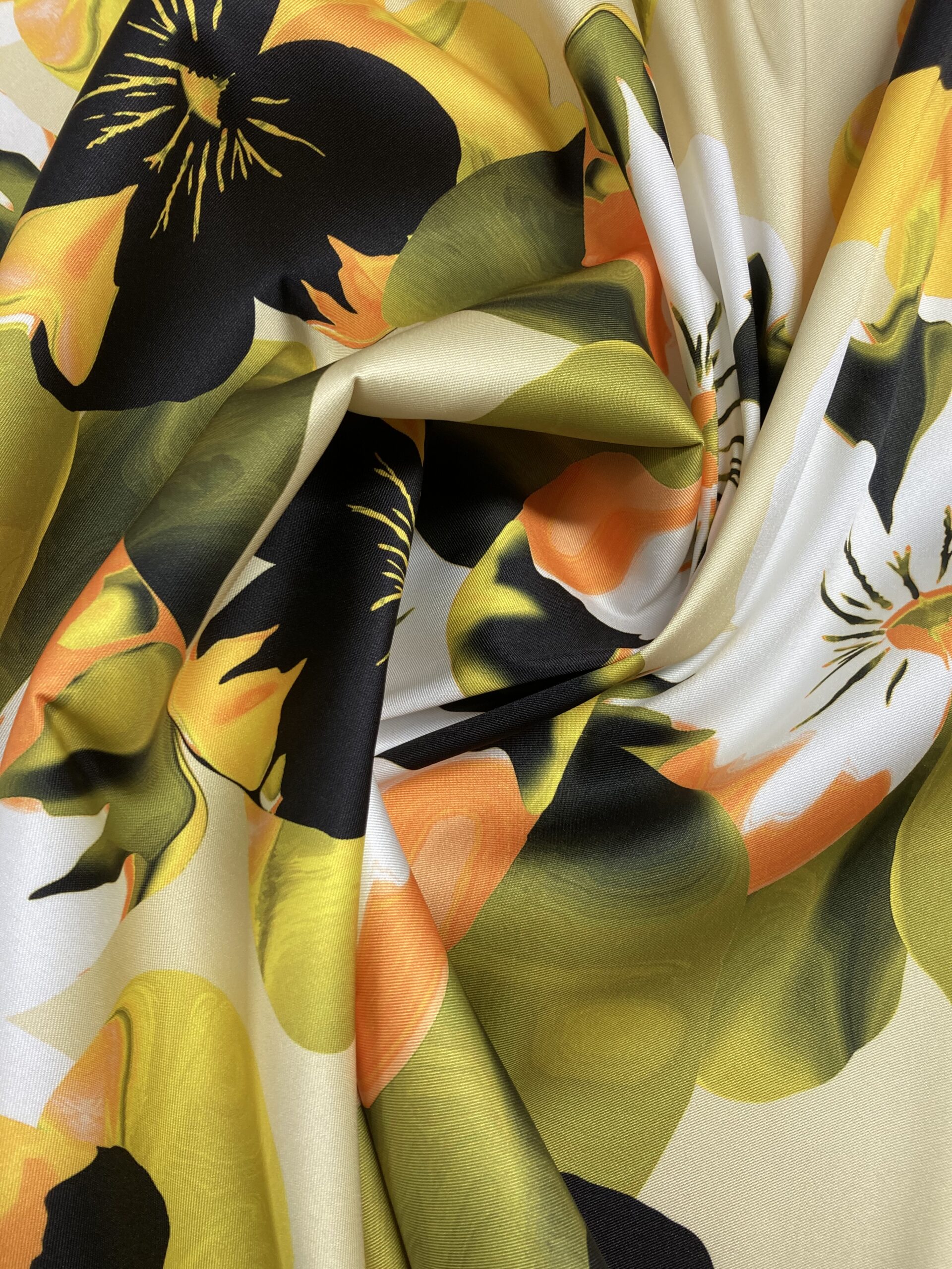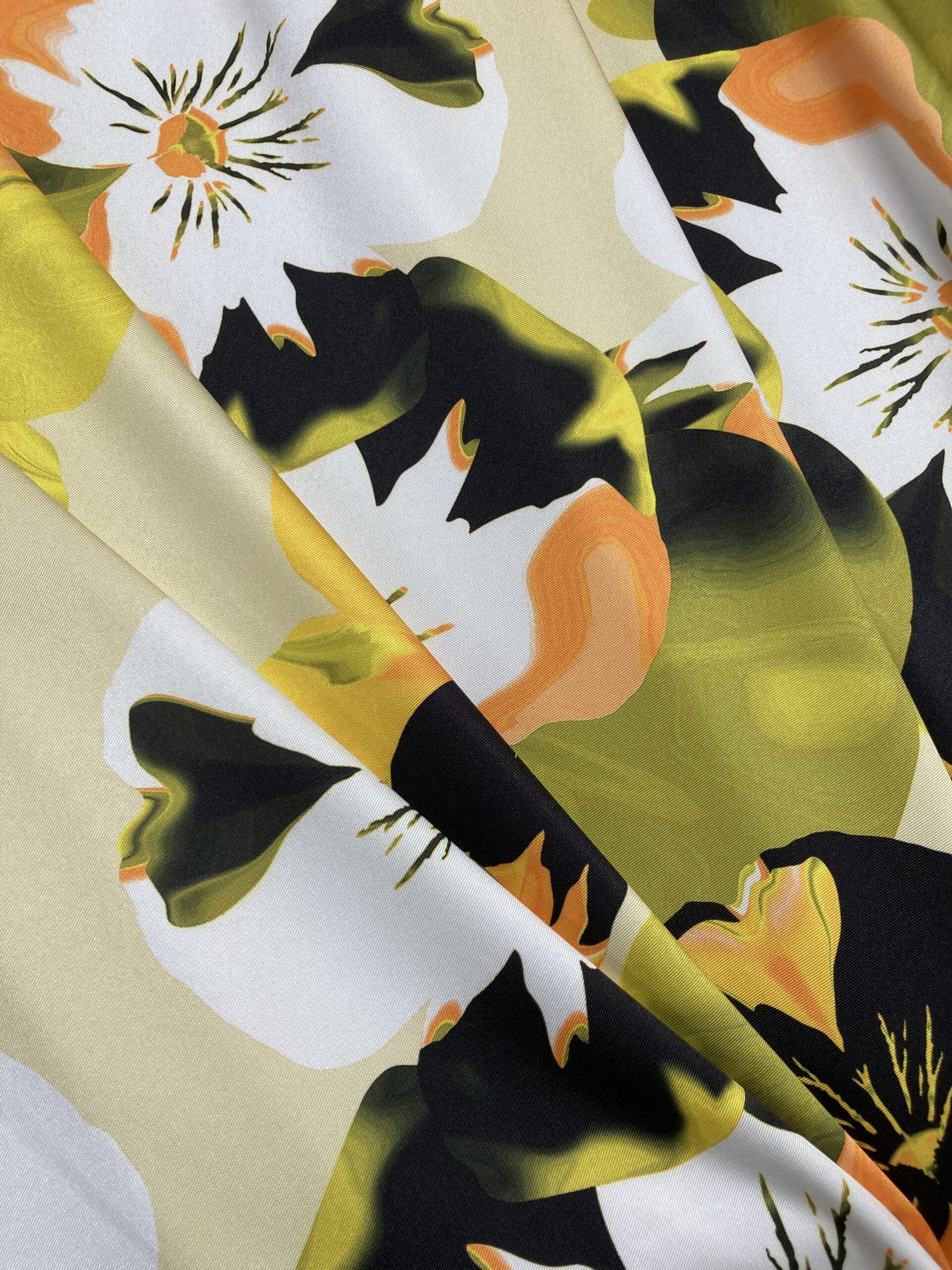 El tejido Mikado estampado es una tela satinada y de textura muy suave, sostenida y con peso. Tela ideal para la confección de vestidos, faldas y boleros.