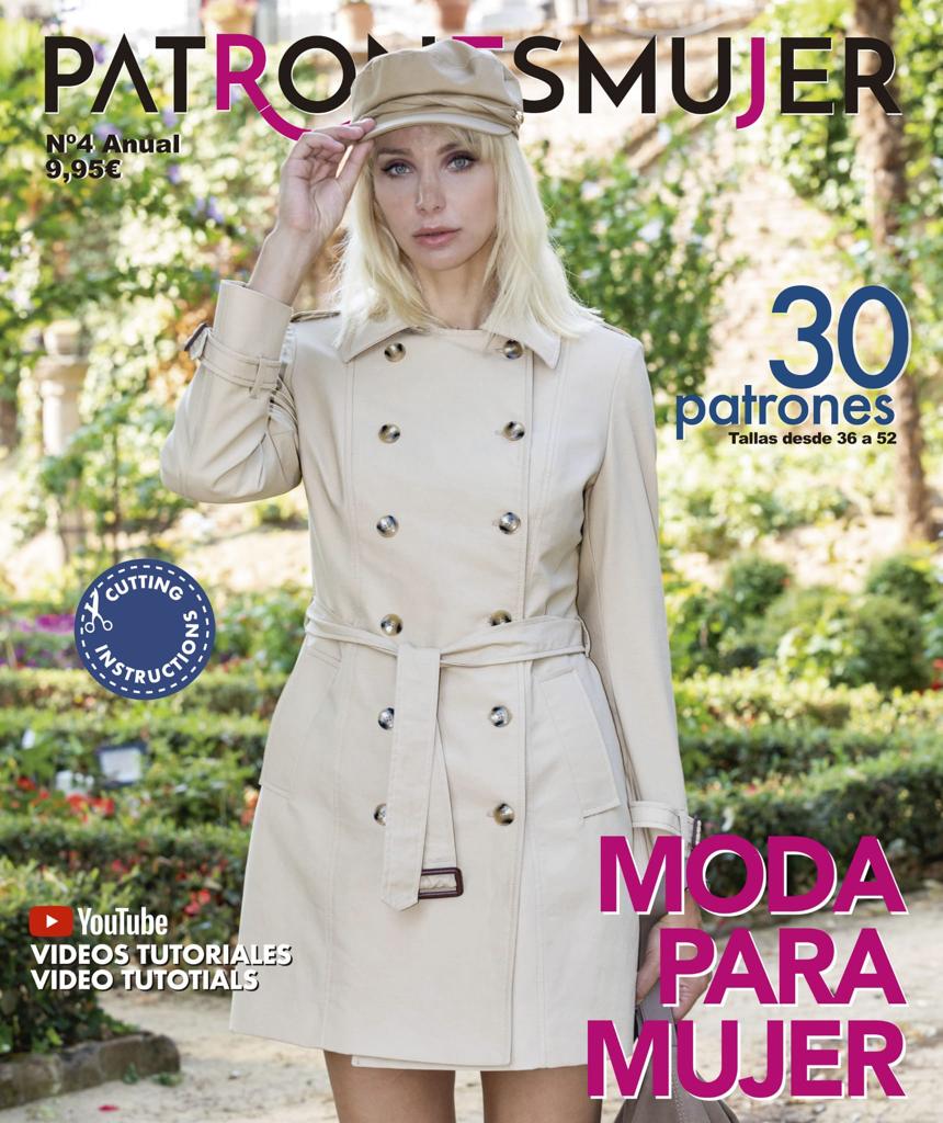 Revista de patrones anual para mujer, tallas desde 36 a 52. Patrones con vídeo tutorial de como se confeccionan las prendas.