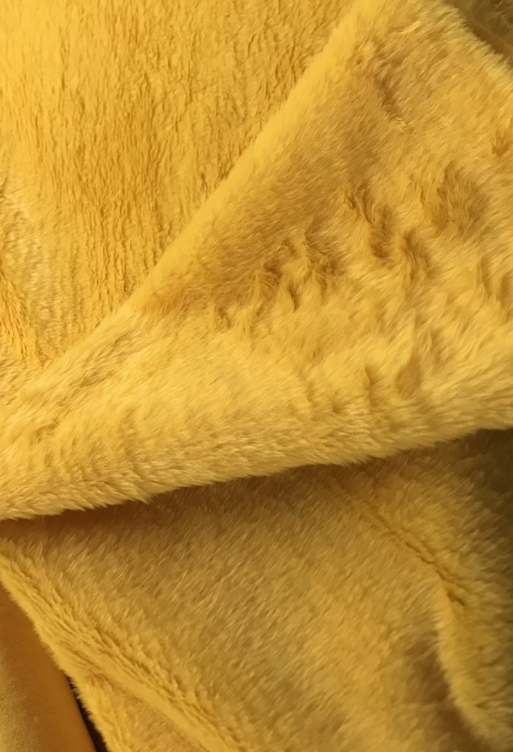 Pelo amarillo corto de tacto suave y acabado satinado.