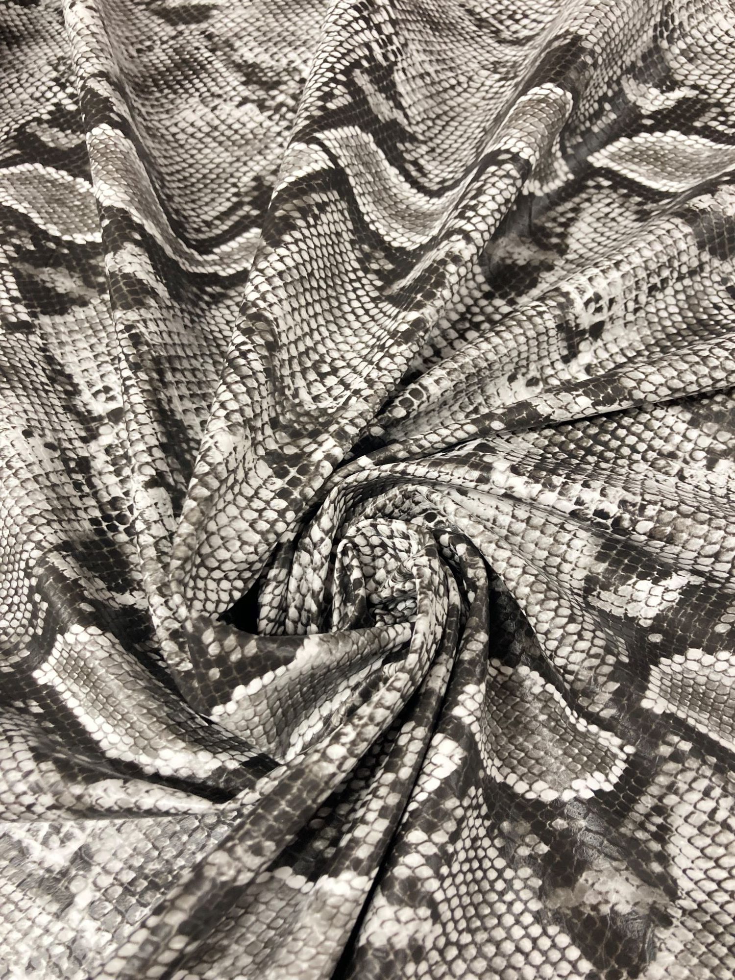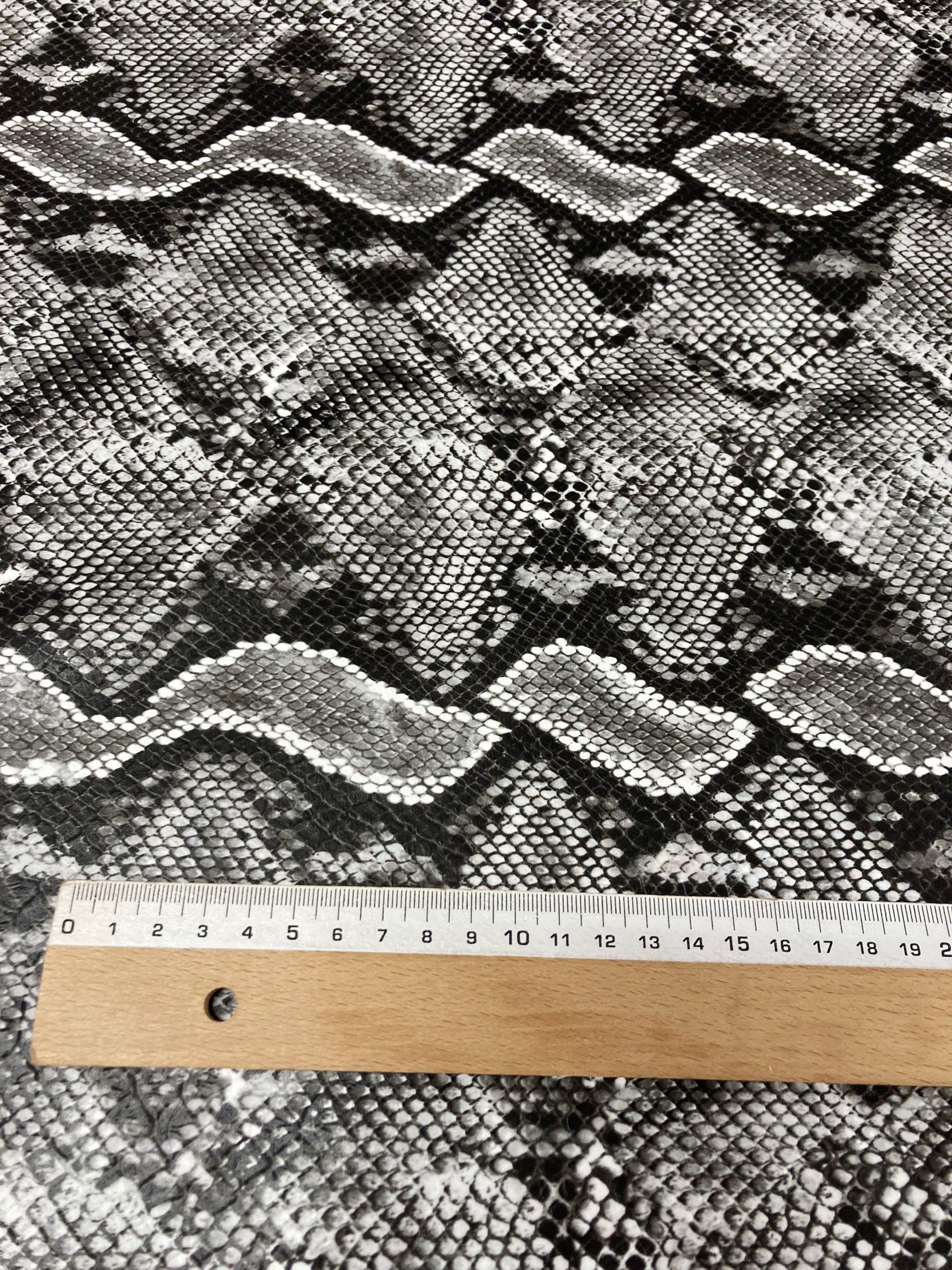 Se trata de una polipiel impermeable y elástica, estampada con motivo de animal print, con textura que imita el pelo, suave e impermeable, ligeramente satinada, con caída y elástica en sentido horizontal.