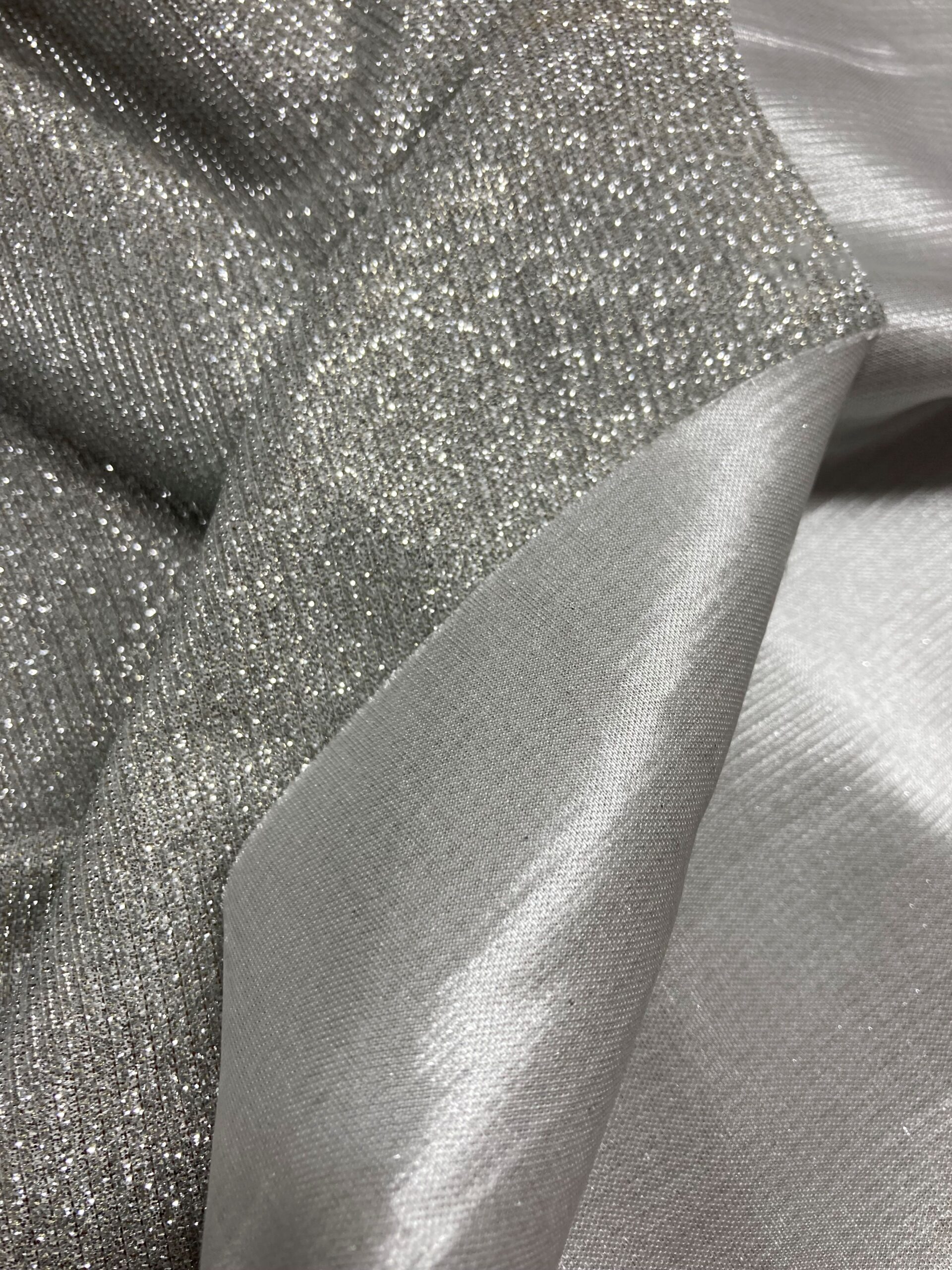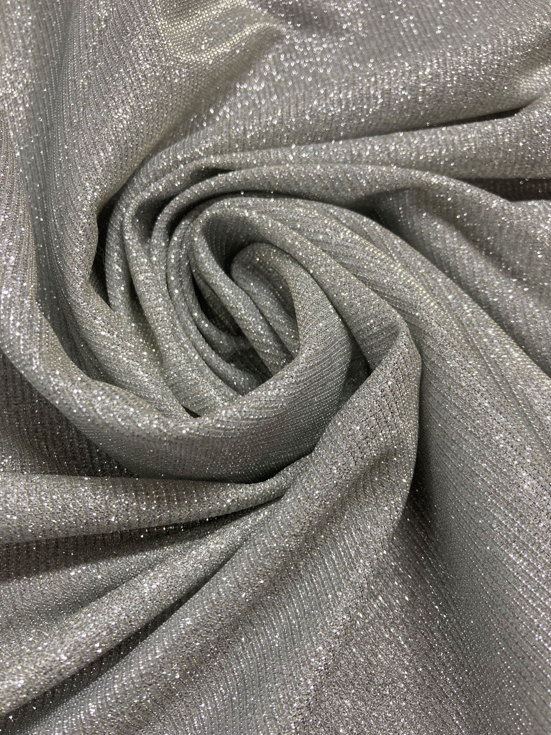 - Tela de punto lamé plateado.