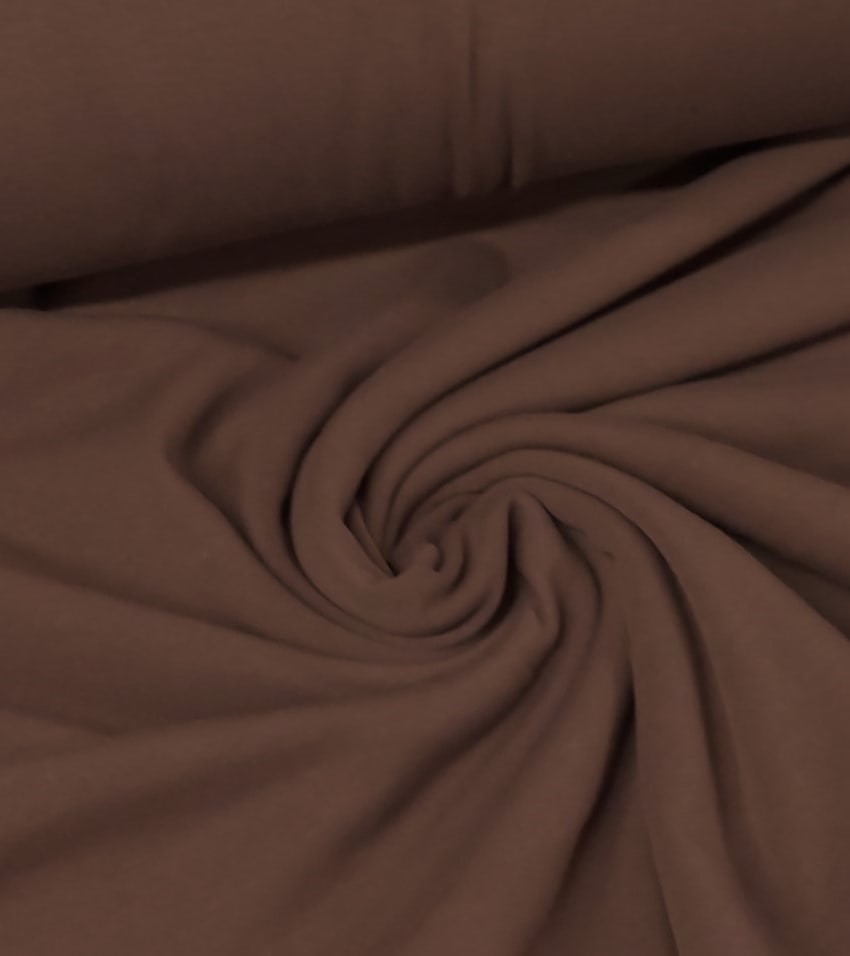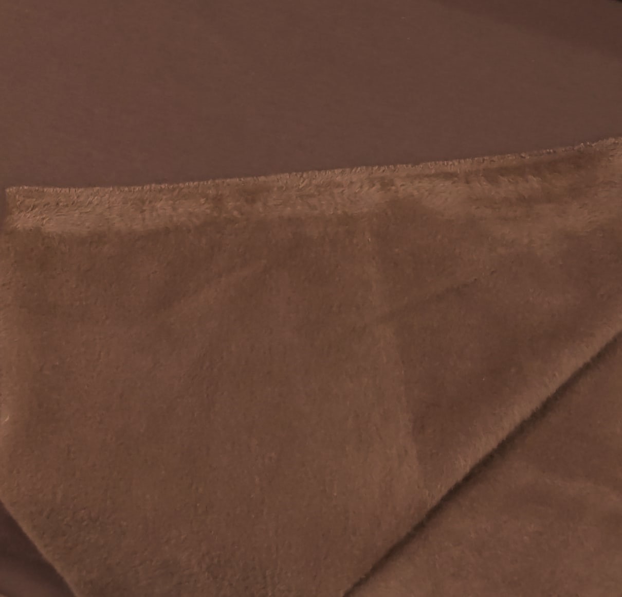 Punto marrón con interior de coralina en marrón . Tejido con cara interior de pelito un poco mas largo de lo normal muy suave, con un poco de caída y de textura muy suave y agradable al tacto. Tela ideal para la confección de pantalones y chaquetas de chándal