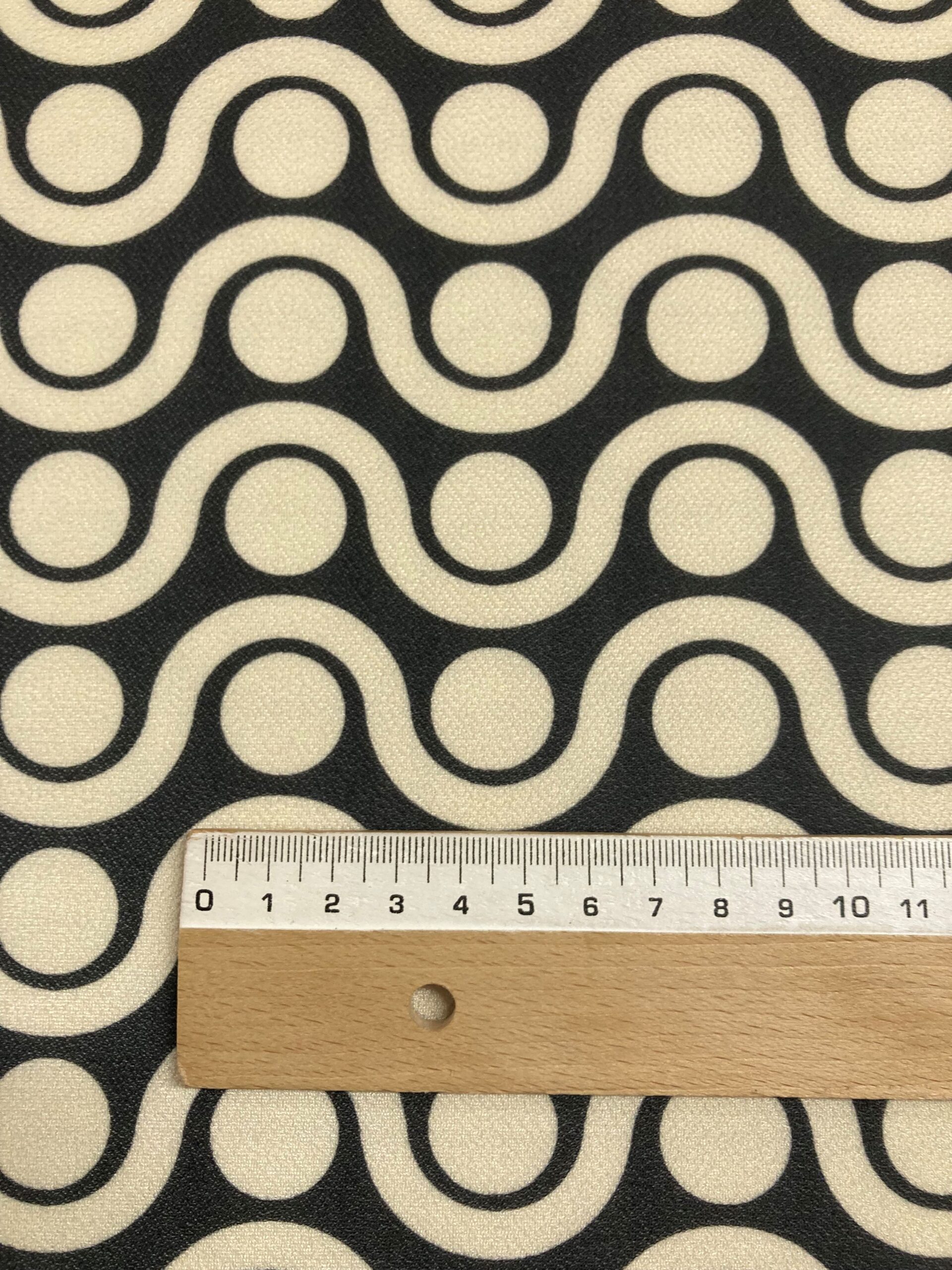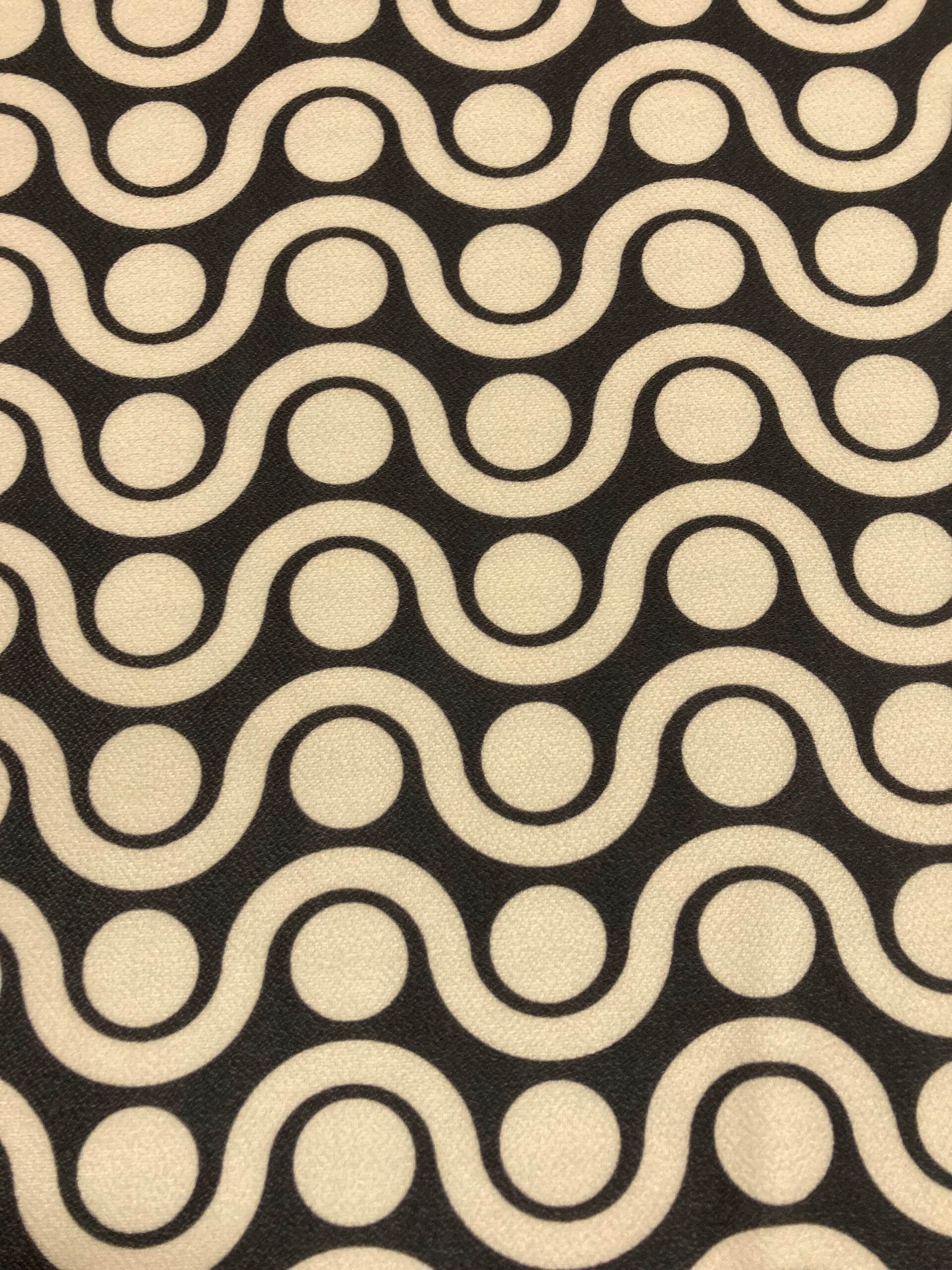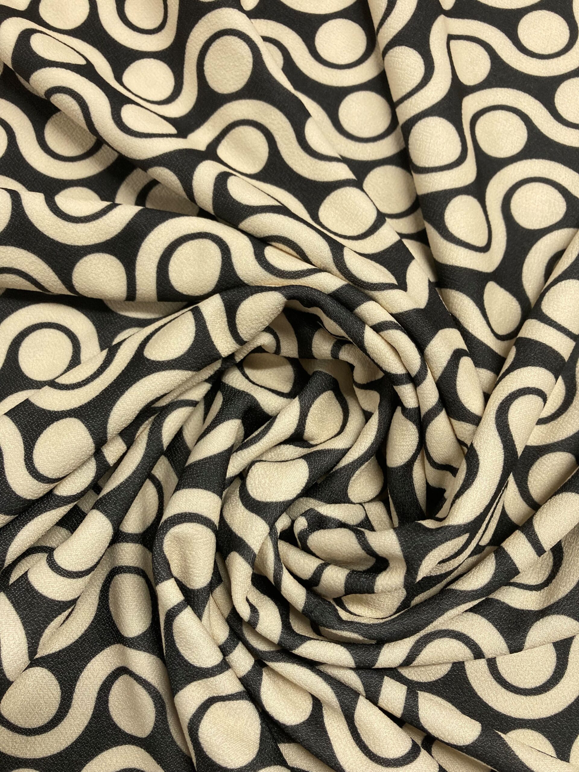 Punto estampado en color negro y beige. Tejido con tacto muy suave, con caída y de textura muy suave y agradable al tacto. Tela ideal para la confección de ropa