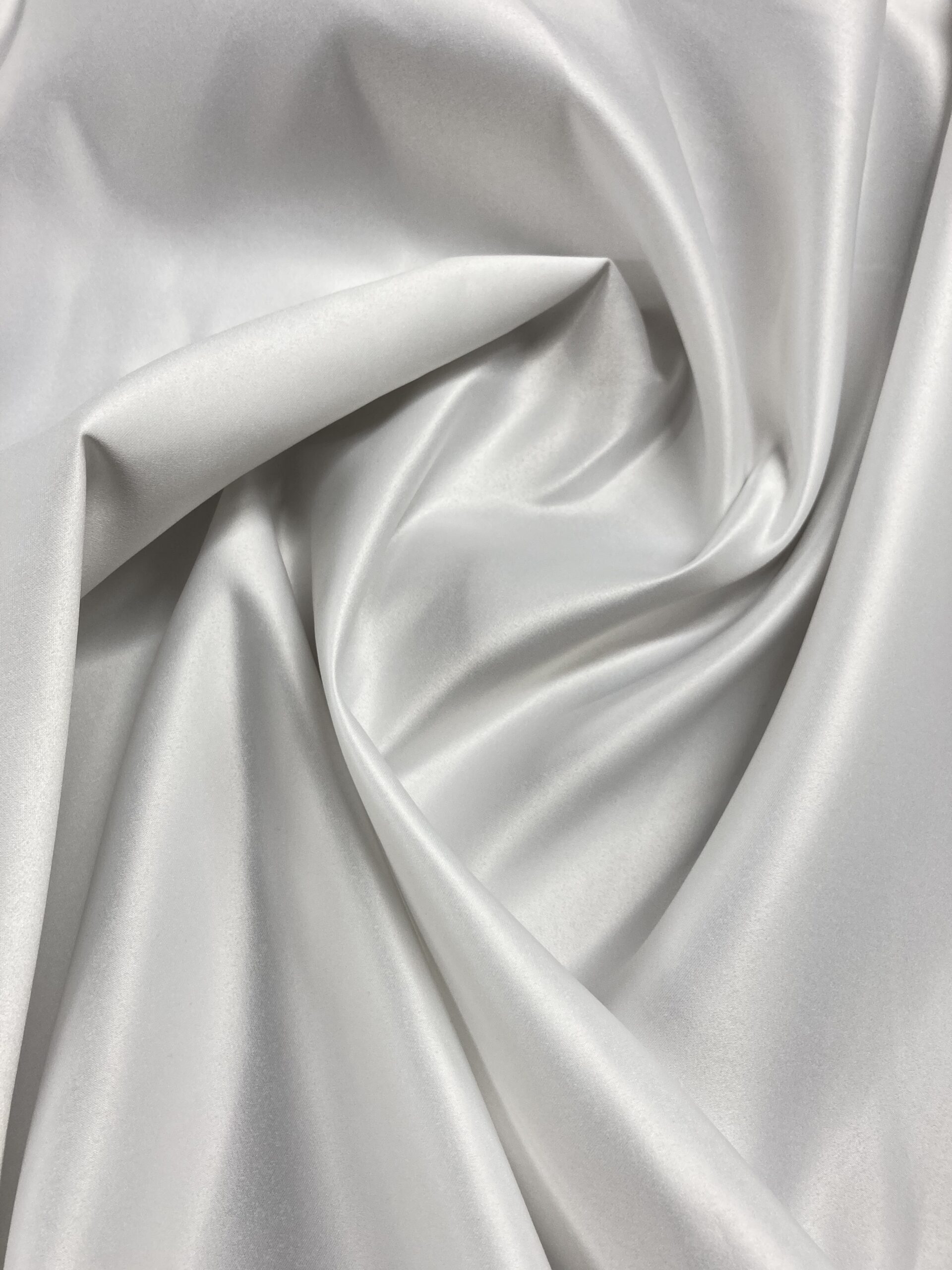 sostenida, con cuerpo y muy suave, con discreto brillo. Raso de novia ideal para vestidos de ceremonia, vestidos de novia y comunión, faldas y boleros.
