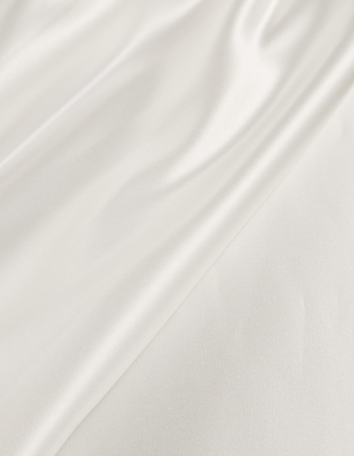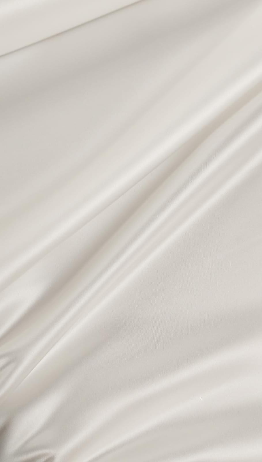 Tela de raso de novia liso de color blanco crudo . Tela blanco crudo opaca, sostenida, con cuerpo y muy suave, con apariencia que se encuentra entre un discreto brillo y matizado. Raso de novia ideal para vestidos de ceremonia, vestidos de novia y comunión, faldas y boleros.