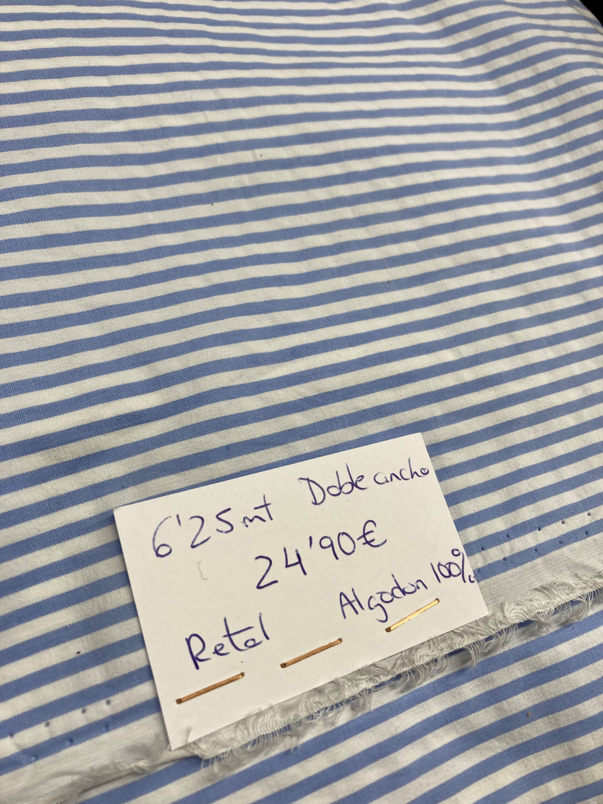 Retal de rayas azules de popelín de algodón, ideal para camisa o vestido.