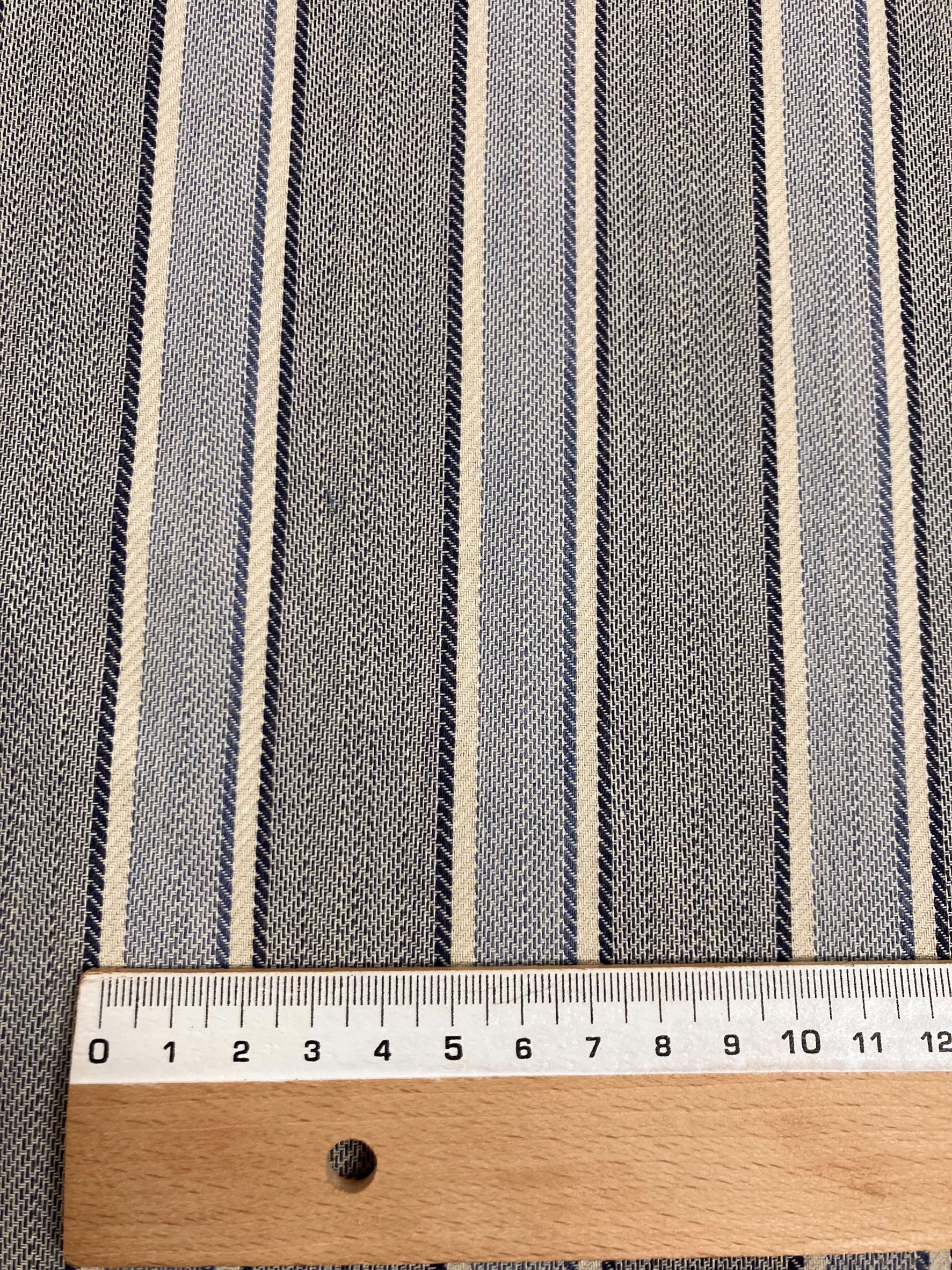 Esta raya es tejido, no es estampada, con lo cual es el propio tejido el que va haciendo las rayas. Las rayas van en sentido tapicería, o sea, a lo largo de la tela.