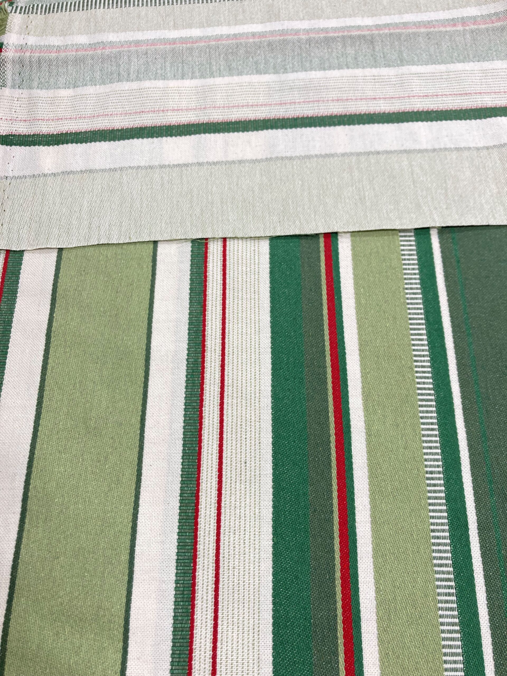 Esta raya es tejido, no es estampada, con lo cual es el propio tejido el que va haciendo las rayas. Las rayas van en sentido tapicería, o sea, a lo largo de la tela.