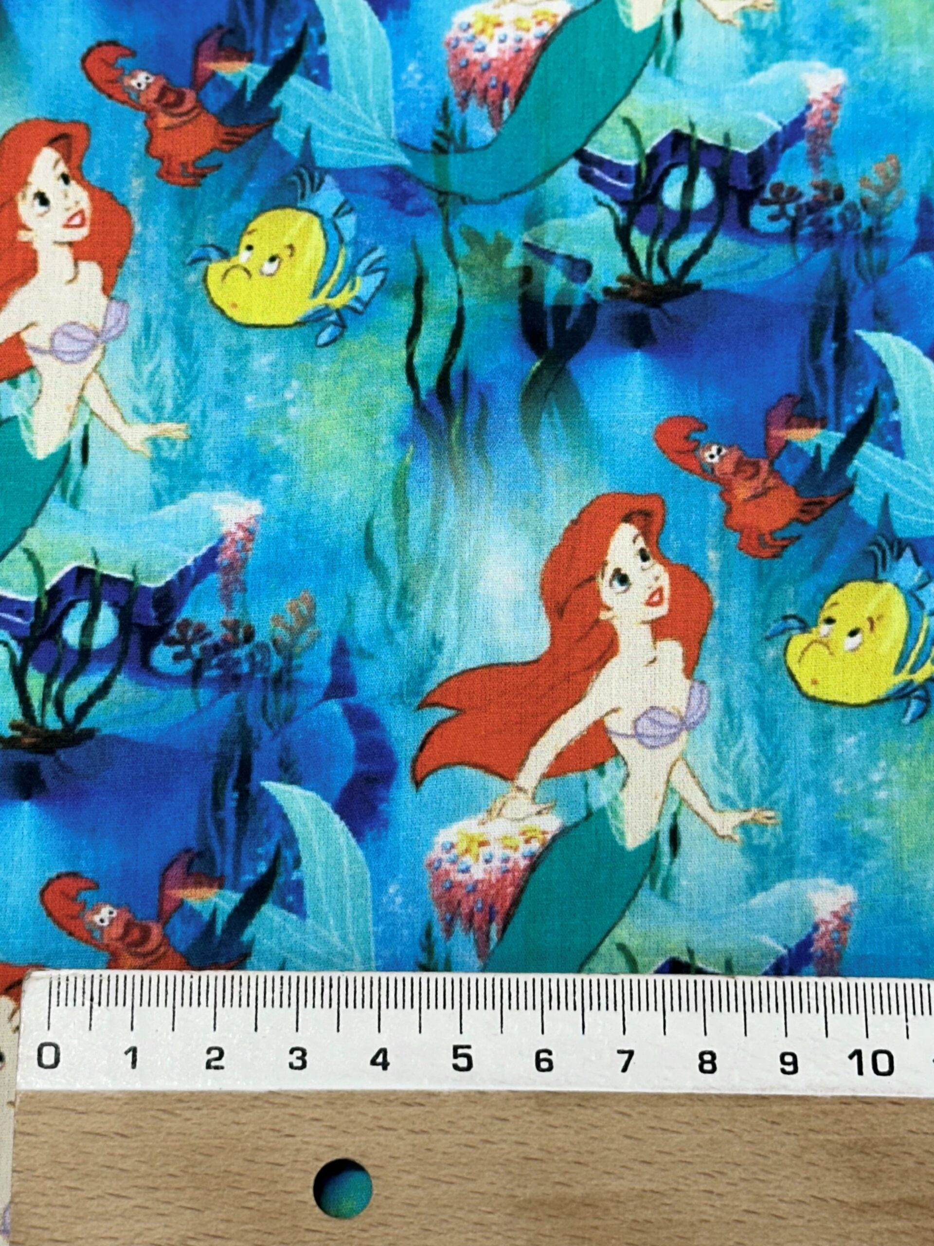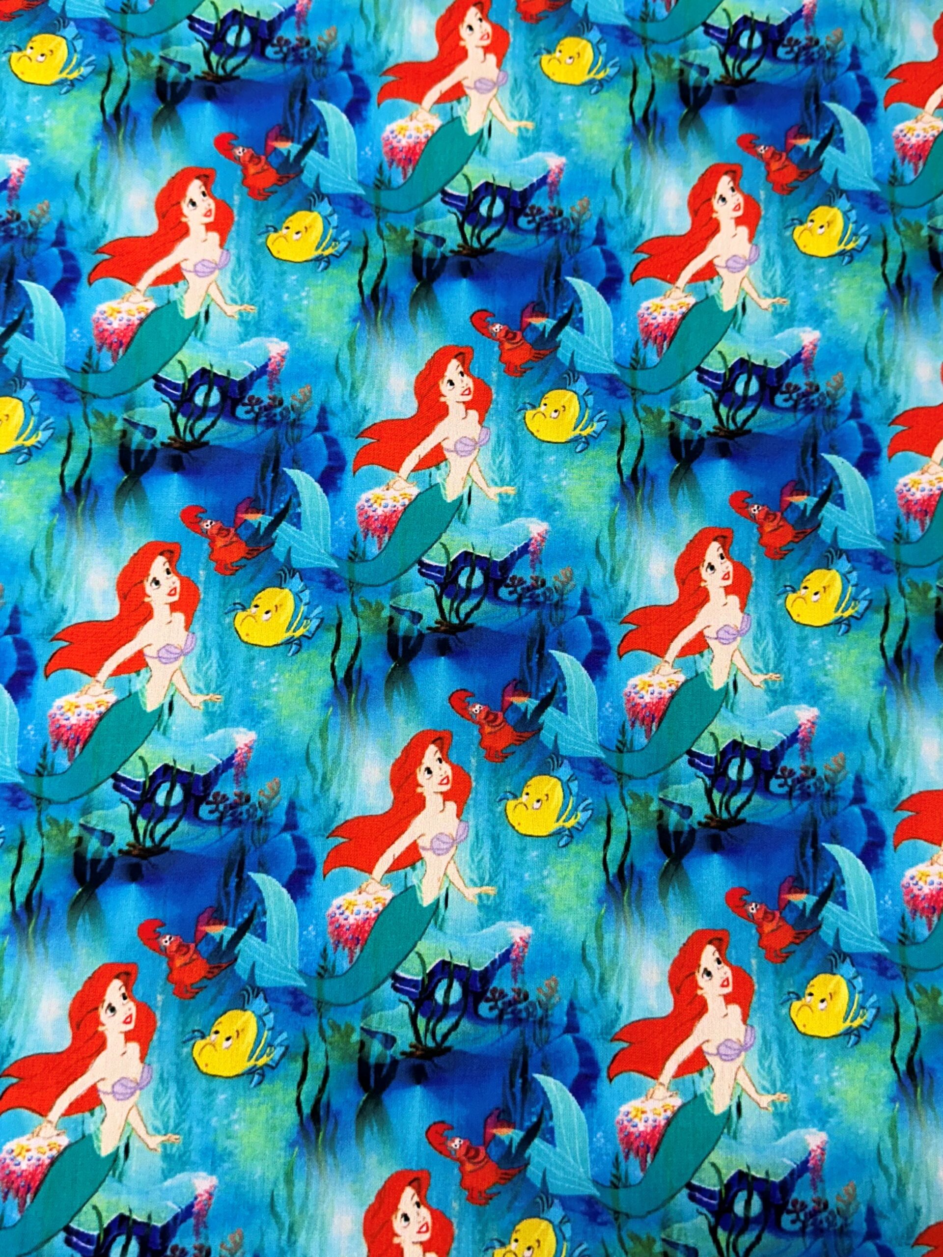 Tela de algodón estampado con motivos de La sirenita