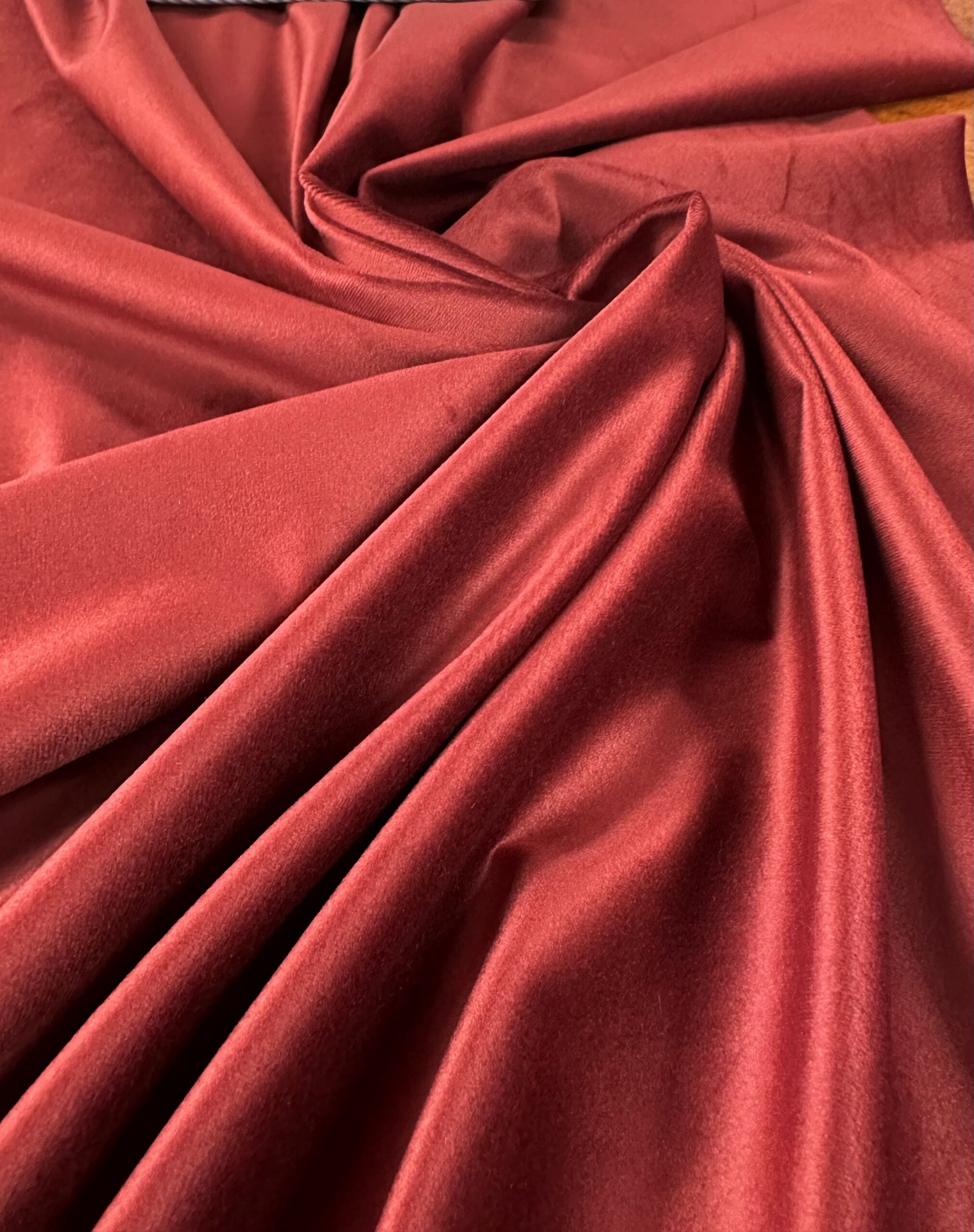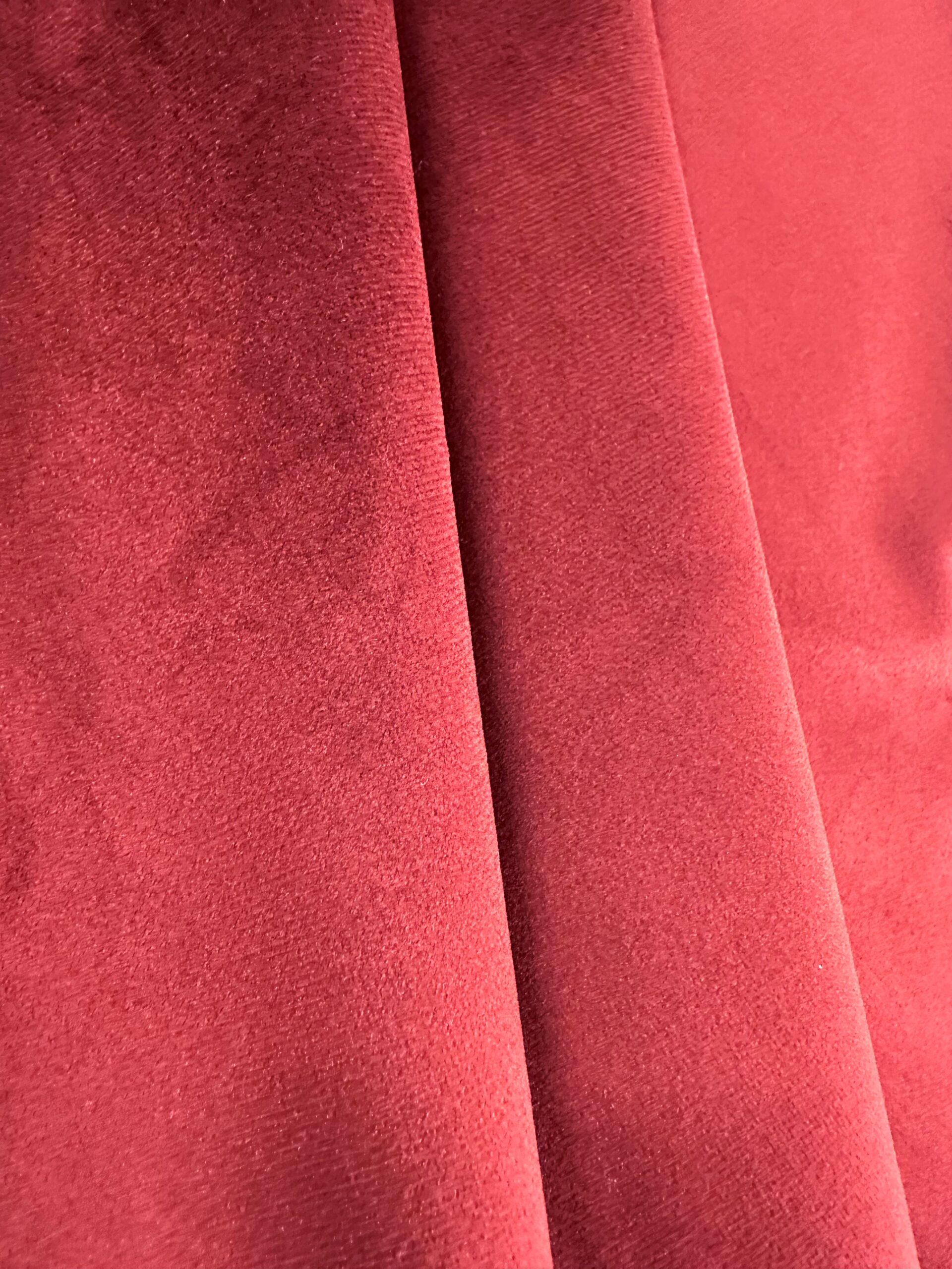 Terciopelo muy suave y con un brillo muy discreto y elegante. Gracias a su ancho de 2.80 mt nos permite usarlo para mas proyectos que el de 1.50 mt de ancho, así que podremos hacer cortinas, batas de mesa, colchas y cualquier proyecto de costura que sea de mayor tamaño.