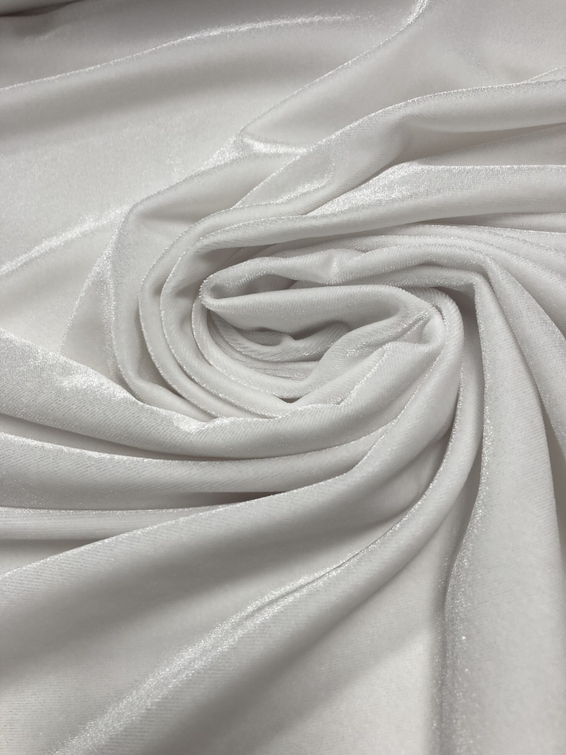 Terciopelo elástico de tacto muy suave y caído de color blanco.