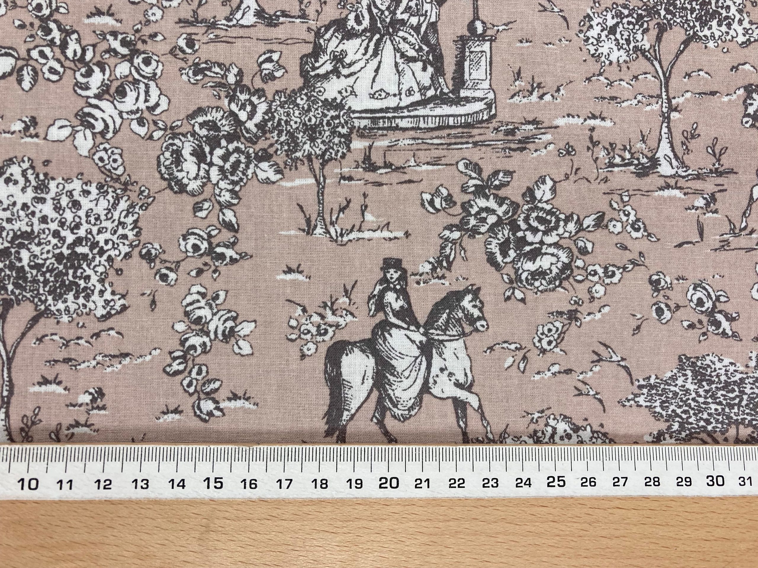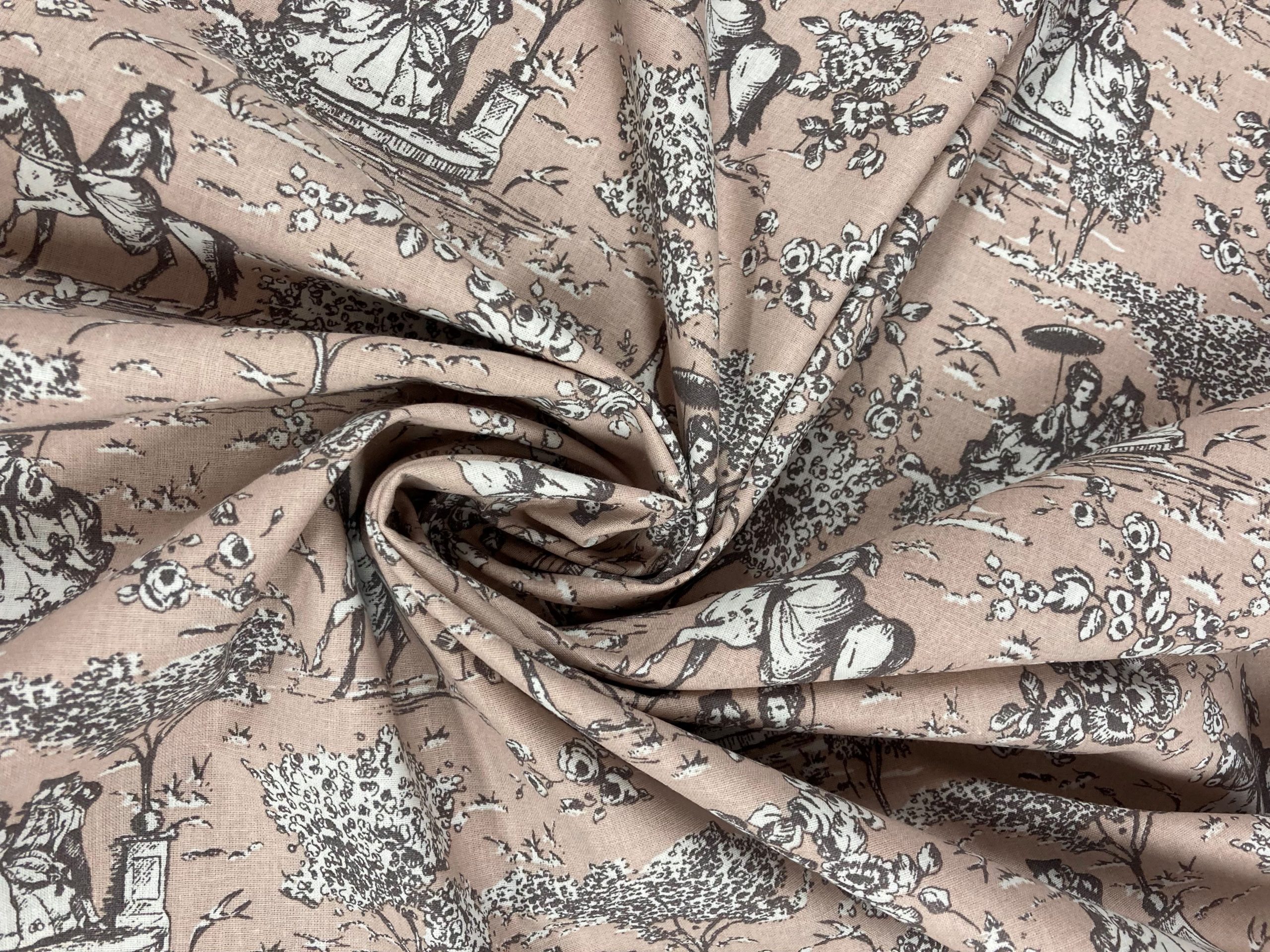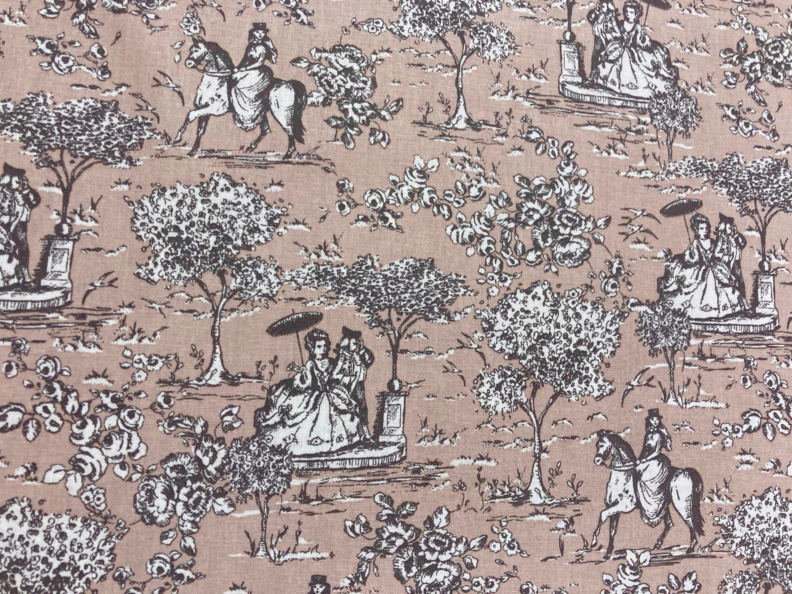 Tela de algodón 100% con estampado Toilé de Jouy fondo verde claro.