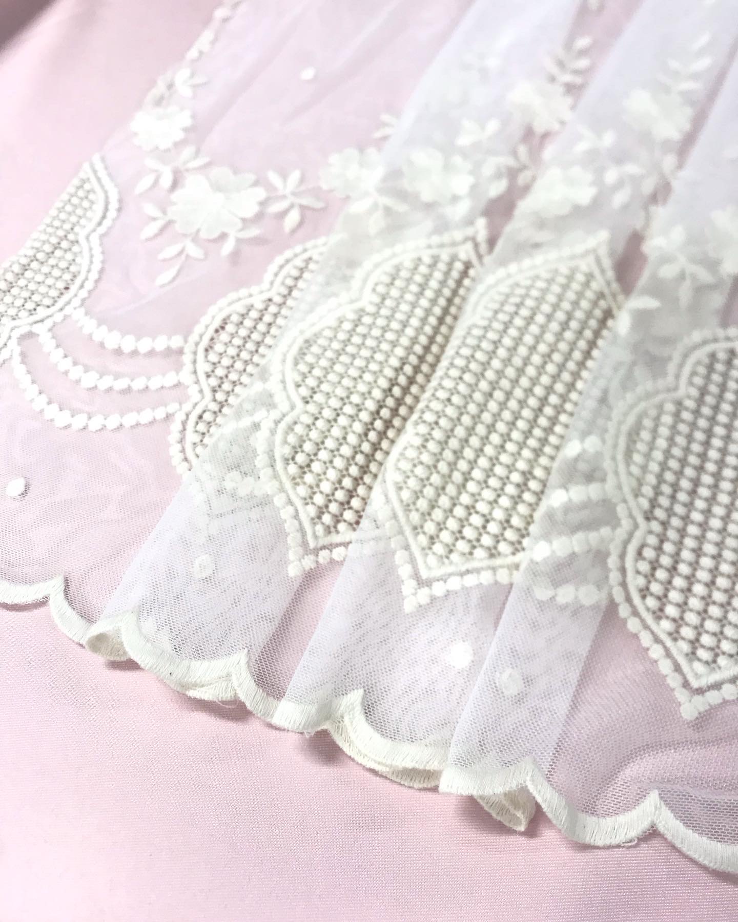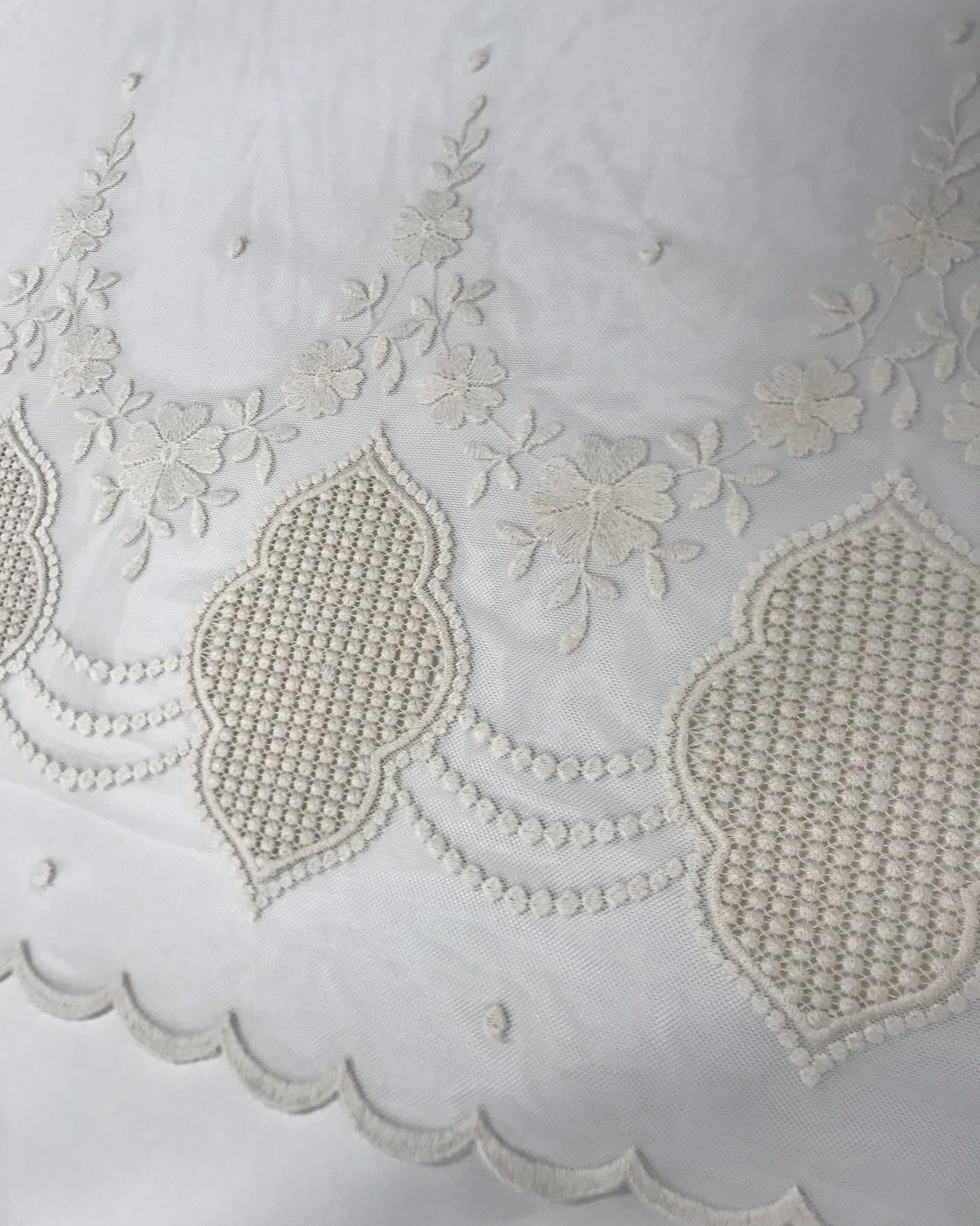 Tul bordado con cenefa en ambos lados. Ideal para vestido de vestido de Primera Comunión y vestidos de ceremonia