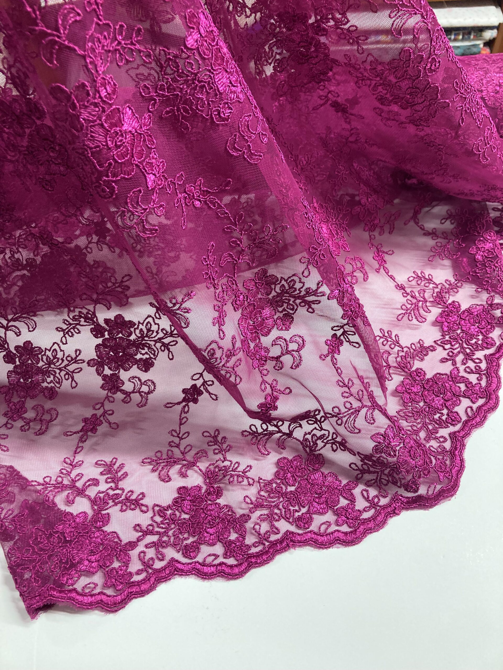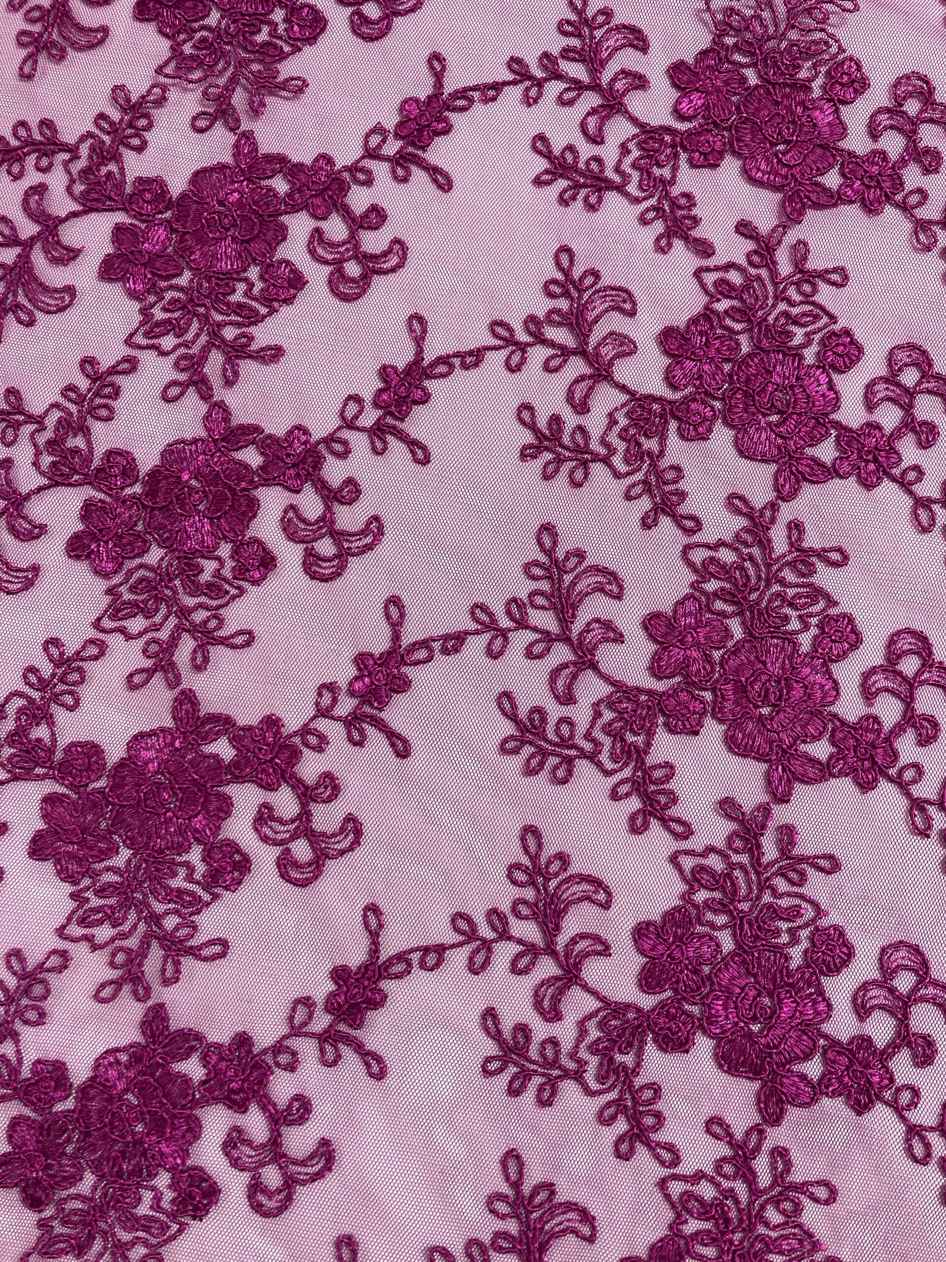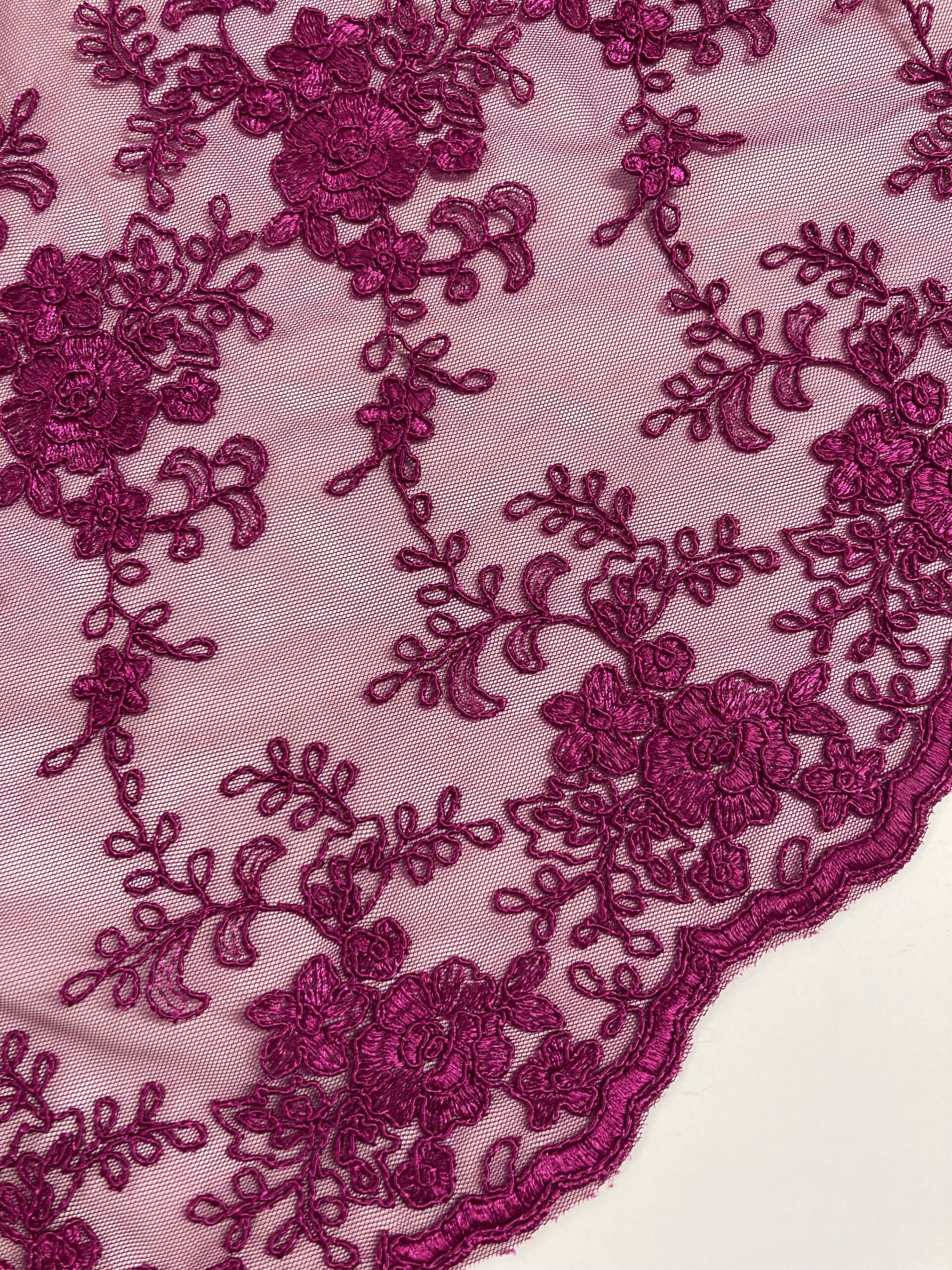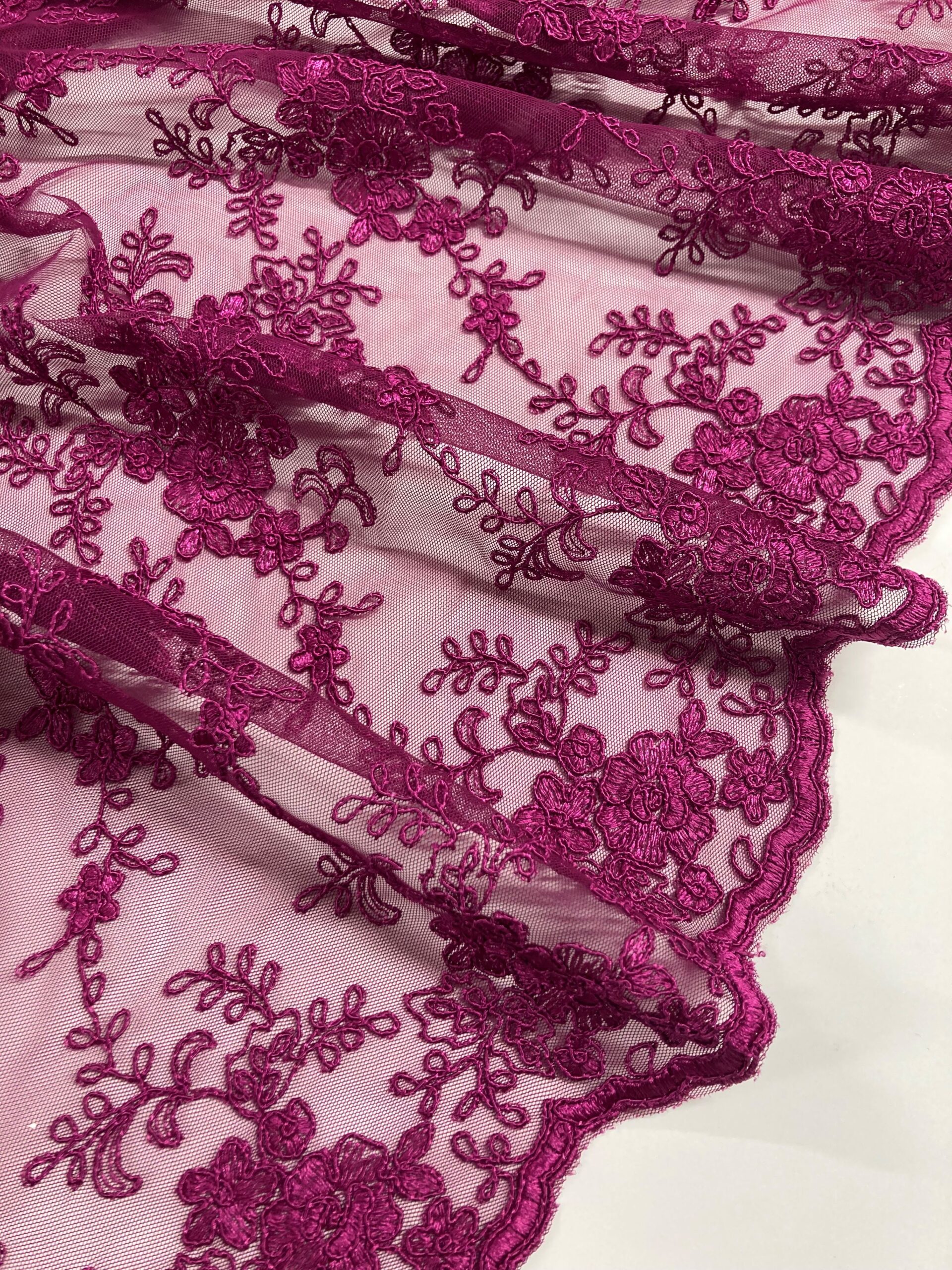 Tul bordado color buganvilla. Ideal para vestido, faldas, blusas o tops de fiesta o eventos.