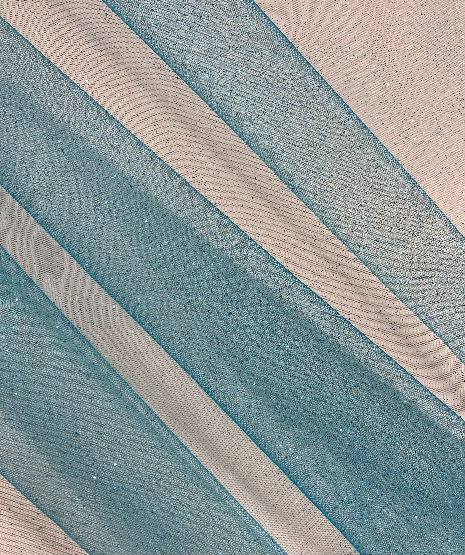 Tela de tul especial para decoraciones y disfraces, es de color turquesa con purpurina dorada
