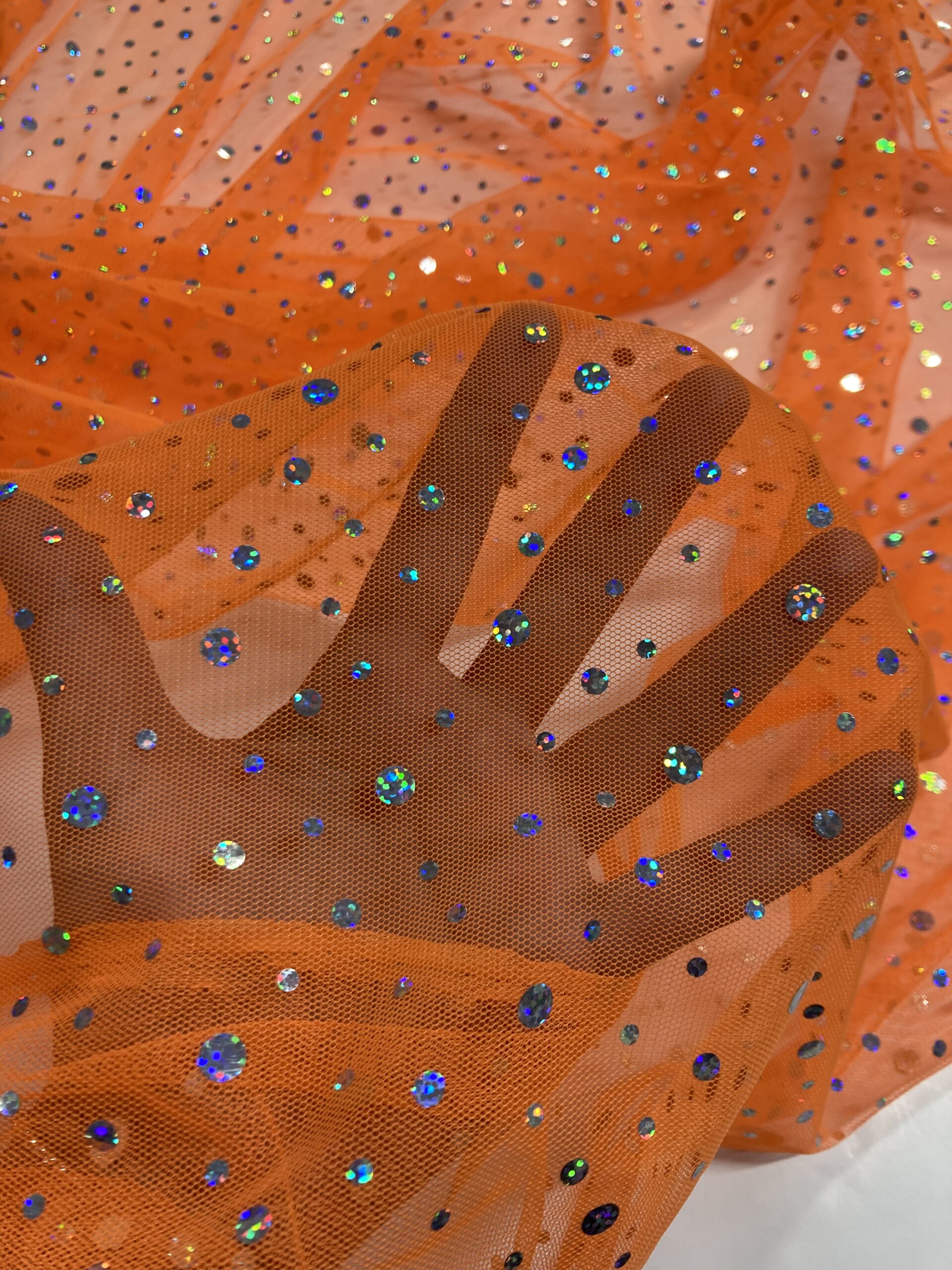 Tul con aplicaciones te brillo, muy usado para decoraciones y disfraces.