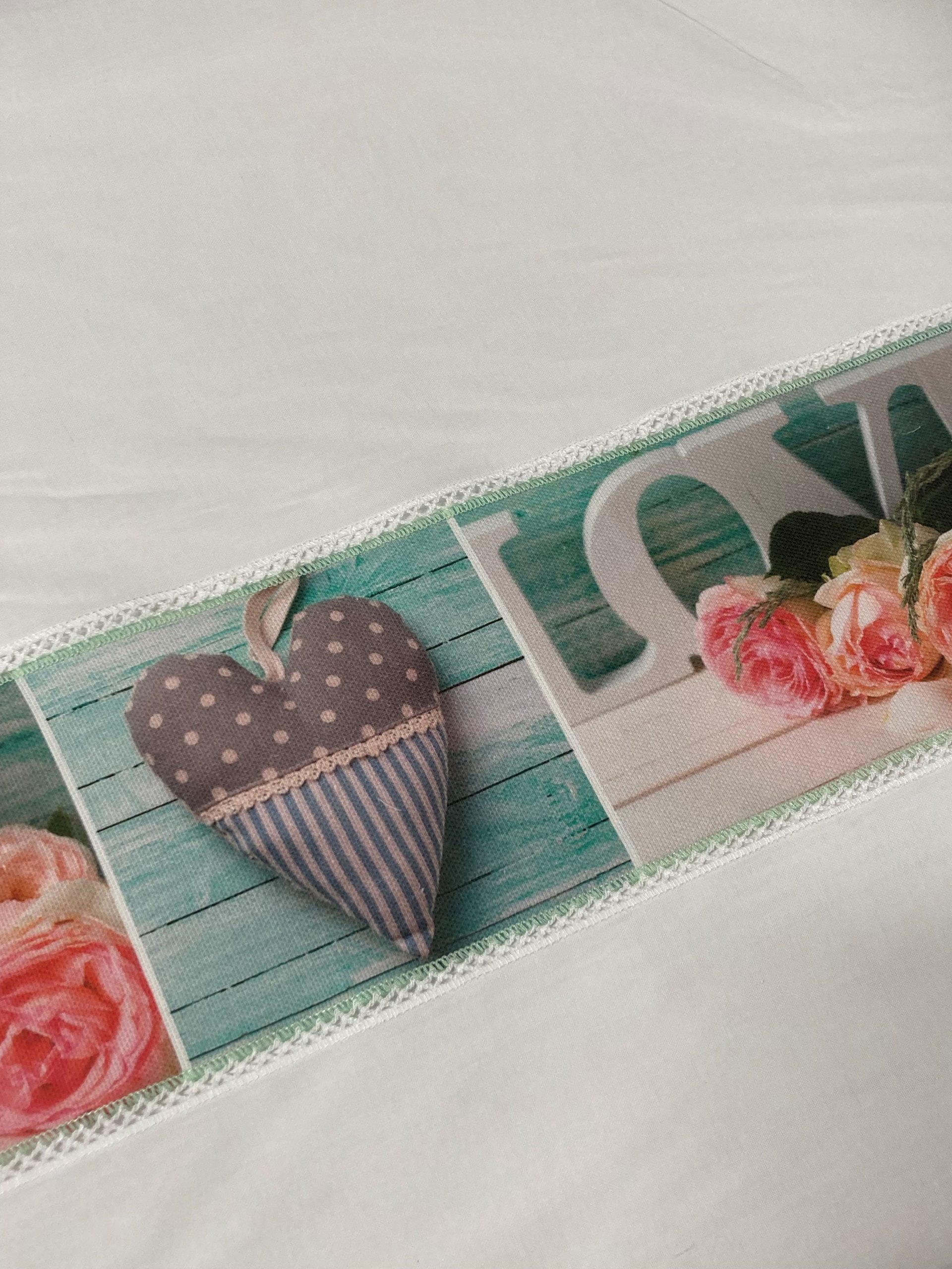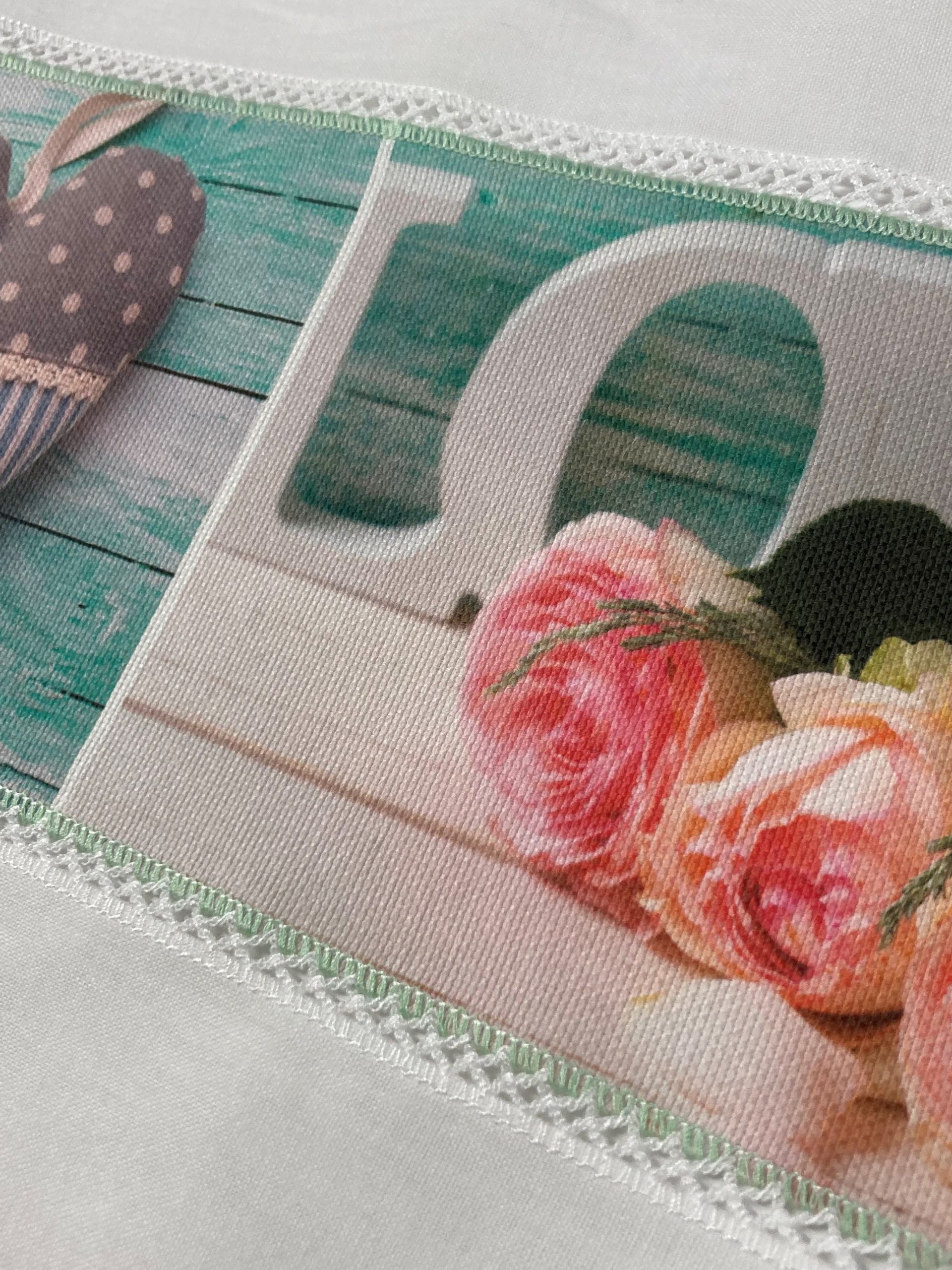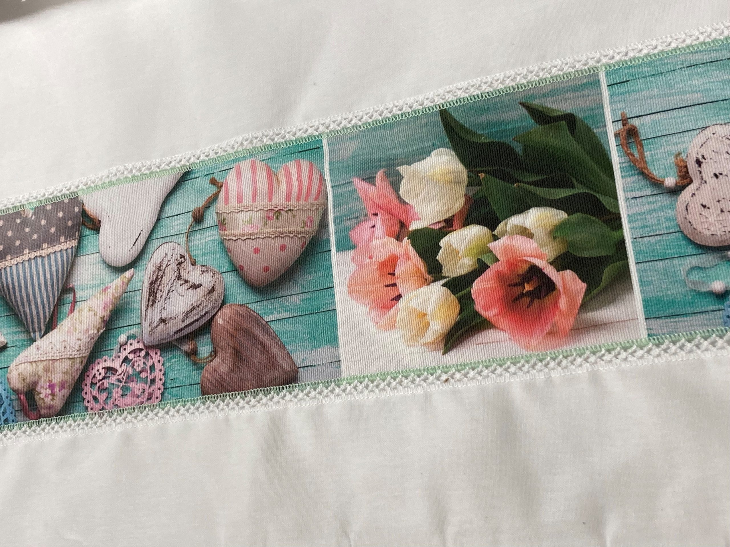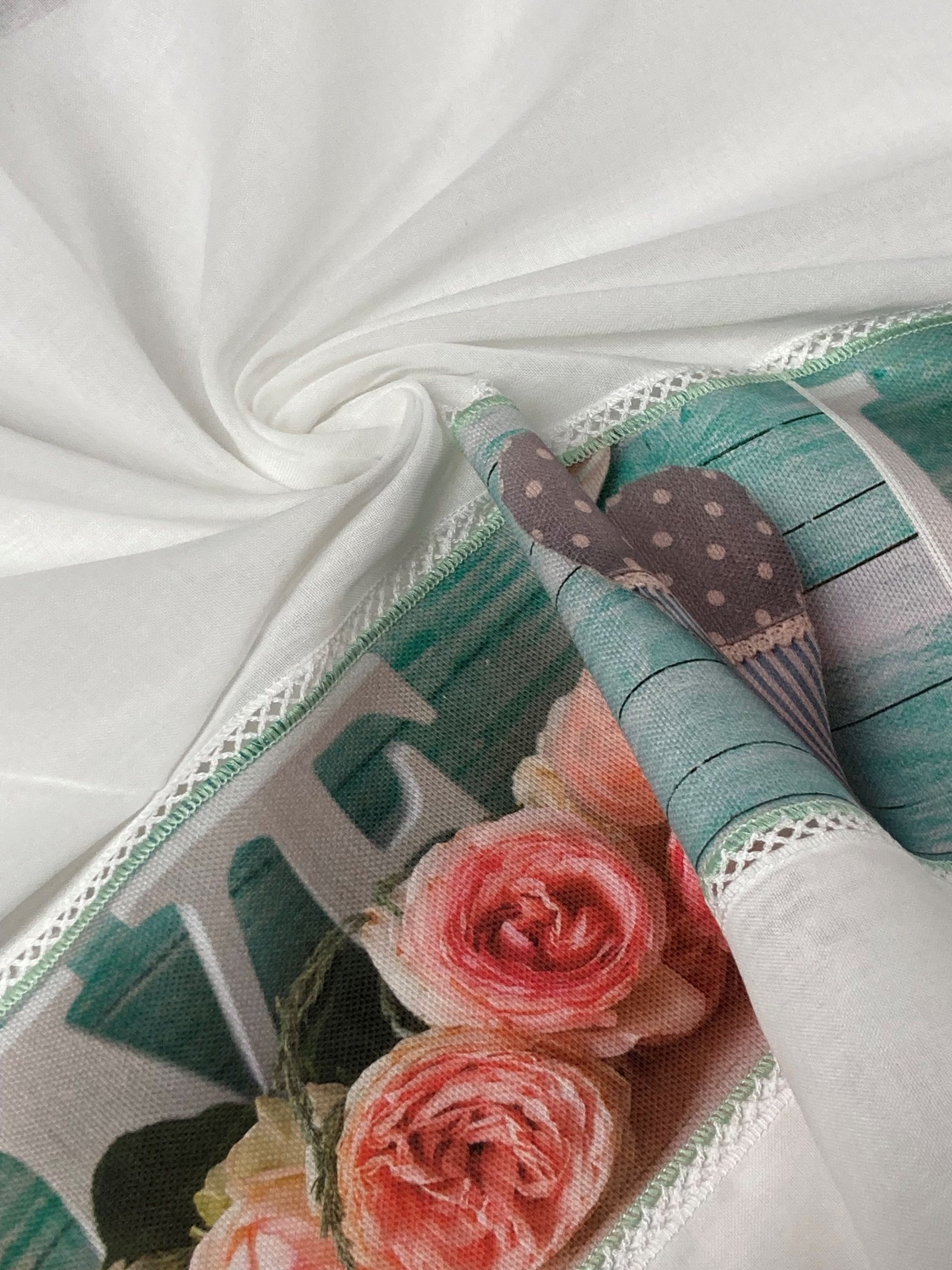 Visillo con cenefa en ambos lados. Son compañeras pero no son iguales.