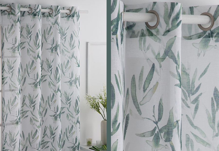 Cortina confeccionada de visillo estampado de la marca Fundeco by ANTILO.